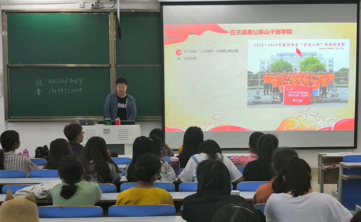 首先,靳雨露鼓励同学们积极学习习总书记在纪念五四一百周年大会上的讲话内容。她指出,作为新时代青年,我们应当牢记五四精神,用严格的标准要求自己,充分认识到历史与时代赋予的使命与担当。随后,河南省青年马克思主义者学员史弘扬结合自身学习经历向同学们分享了“青马工程”学习的心得与体会。他着重强调了写作能力的重要性,建议同学们在日常生活中秉持着“多读、多看、多思、多写”的原则积极阅读原著,提升自身科学文化素质和思想道德修养,为以后的工作奠定理论基础。最后,靳雨露进行总结发言,希望全体同学戒骄戒躁、脚踏实地,通过努力奋斗实现人生价值,成为一名德智体美劳全面发展的综合型人才。