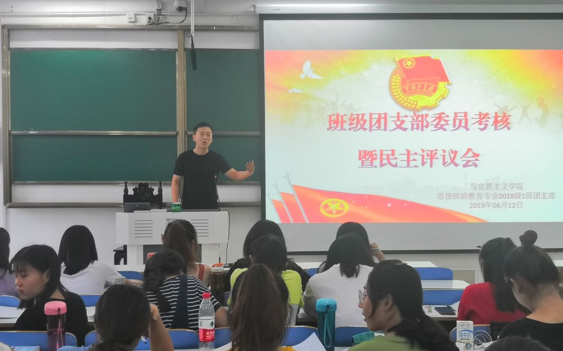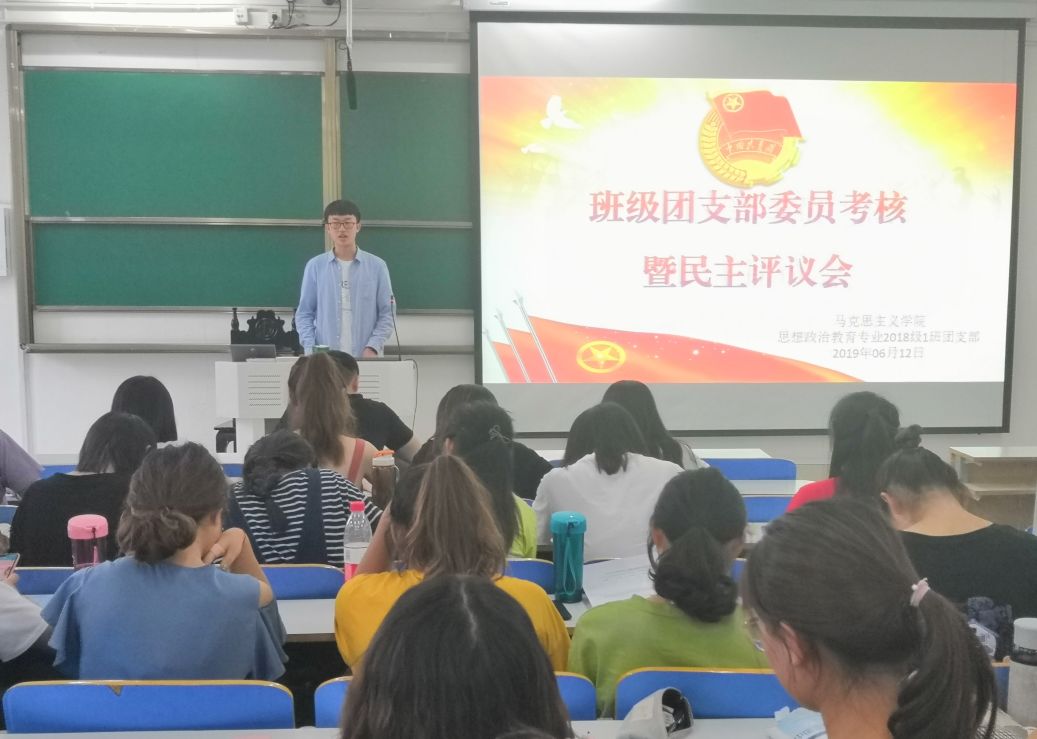 6月12日下午,beat365亚洲版官网2018级思想政治教育一班在社科楼516教室顺利开展班级团支部委员考核暨民主评议会。团委书记曹栋、分团委学生会主席团及2018级第一团支部全体成员共同参加此次班会。班会由团支部副书记邢子豪主持。