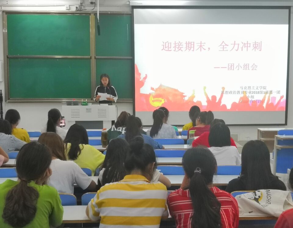 6月17日下午,beat365亚洲版官网2018级思想政治教育一班第一团小组在社科楼516教室顺利开展“迎接期末,全力冲刺”主题团会。第一团小组全体成员共同参加此次团会。此次团会由团小组成员魏子航主持。