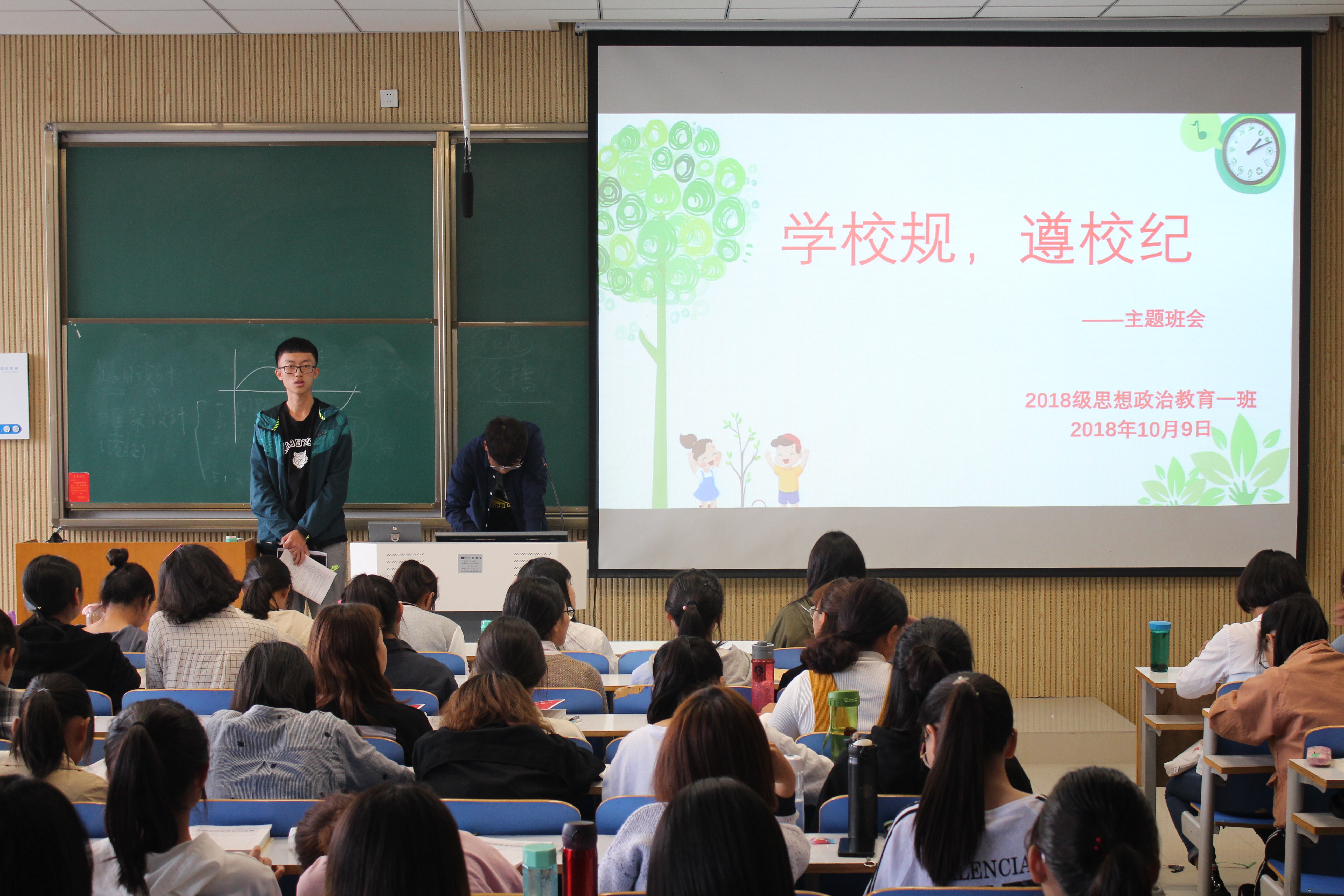为规范beat365官网学生管理行为,维护学院正常的教育教学秩序和生活秩序,10月9日上午,beat365亚洲版官网2018级思想政治教育一班在社科楼515教室顺利开展“学校规,遵校纪”主题班会。2018级思政一班全体同学共同参加此次班会。此次班会由班长邢子豪主持。