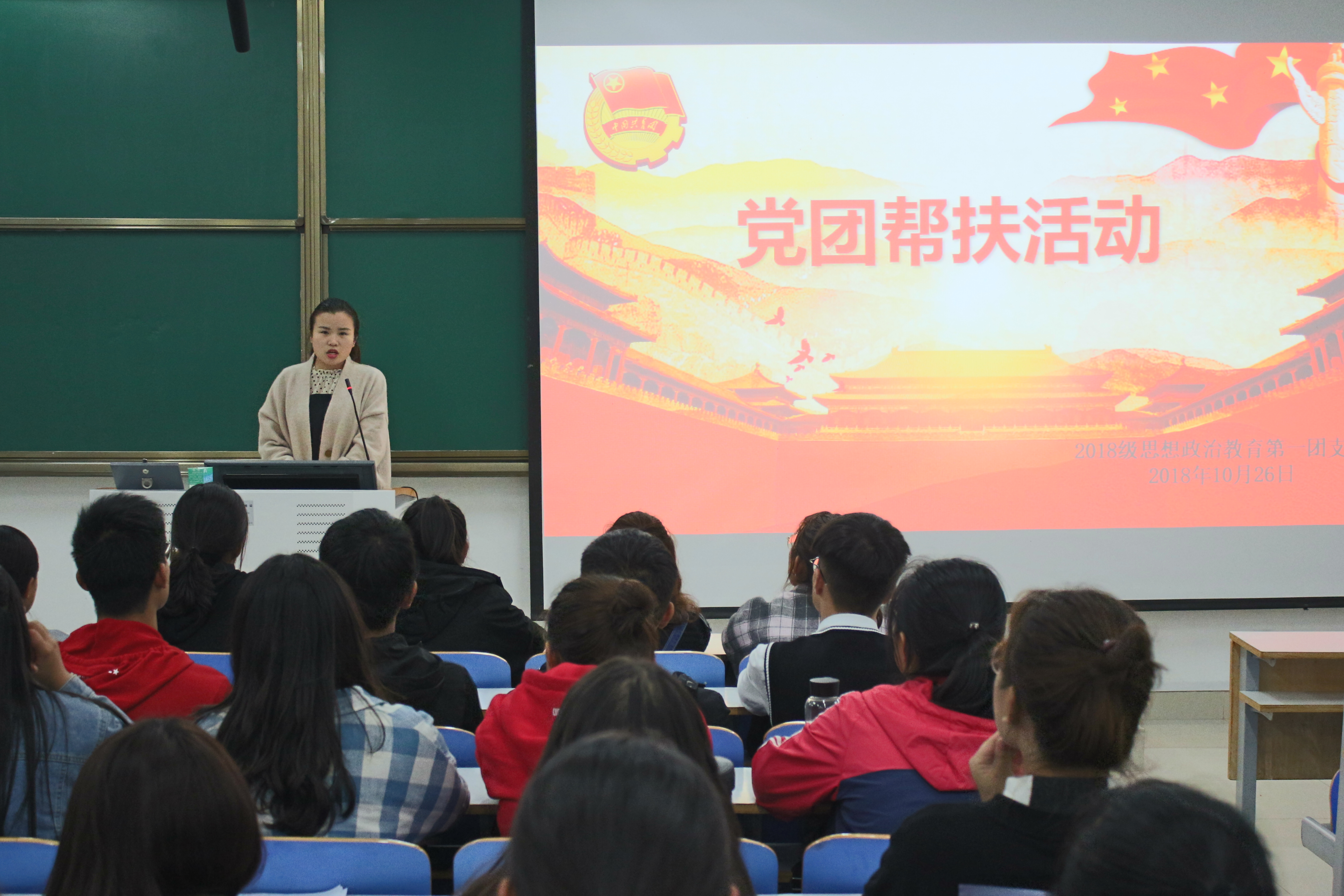 为充分发挥党员干部的先锋模范作用,促进学生全面健康发展。10月26日晚,beat365亚洲版官网2018级思想政治教育一班在社科楼514教室顺利开展“党团帮扶”班会。2018级思政一班全体同学参加此次班会。班会由团支书靳雨露主持。