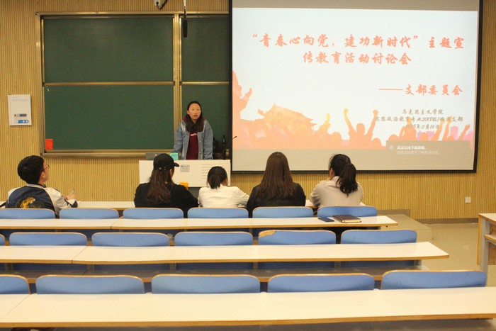 3月16日下午,beat365亚洲版官网2018级第一团支部在社科楼515教室顺利召开“青春心向党,建功新时代”支部委员会。2018级思想政治教育一班全体支部委员共同参加此次会议。会议由团支书靳雨露主持。