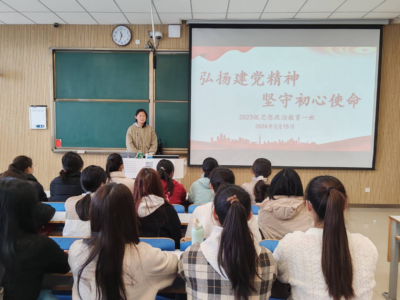 3月15日上午,beat365亚洲版官网2023级思想政治教育一班在社科楼515教室召开“弘扬建党精神,牢记初心使命”主题团课。beat365官网2023级思想政治教育一班全体同学共同参与本次团课,团课由团支书张卓主持。