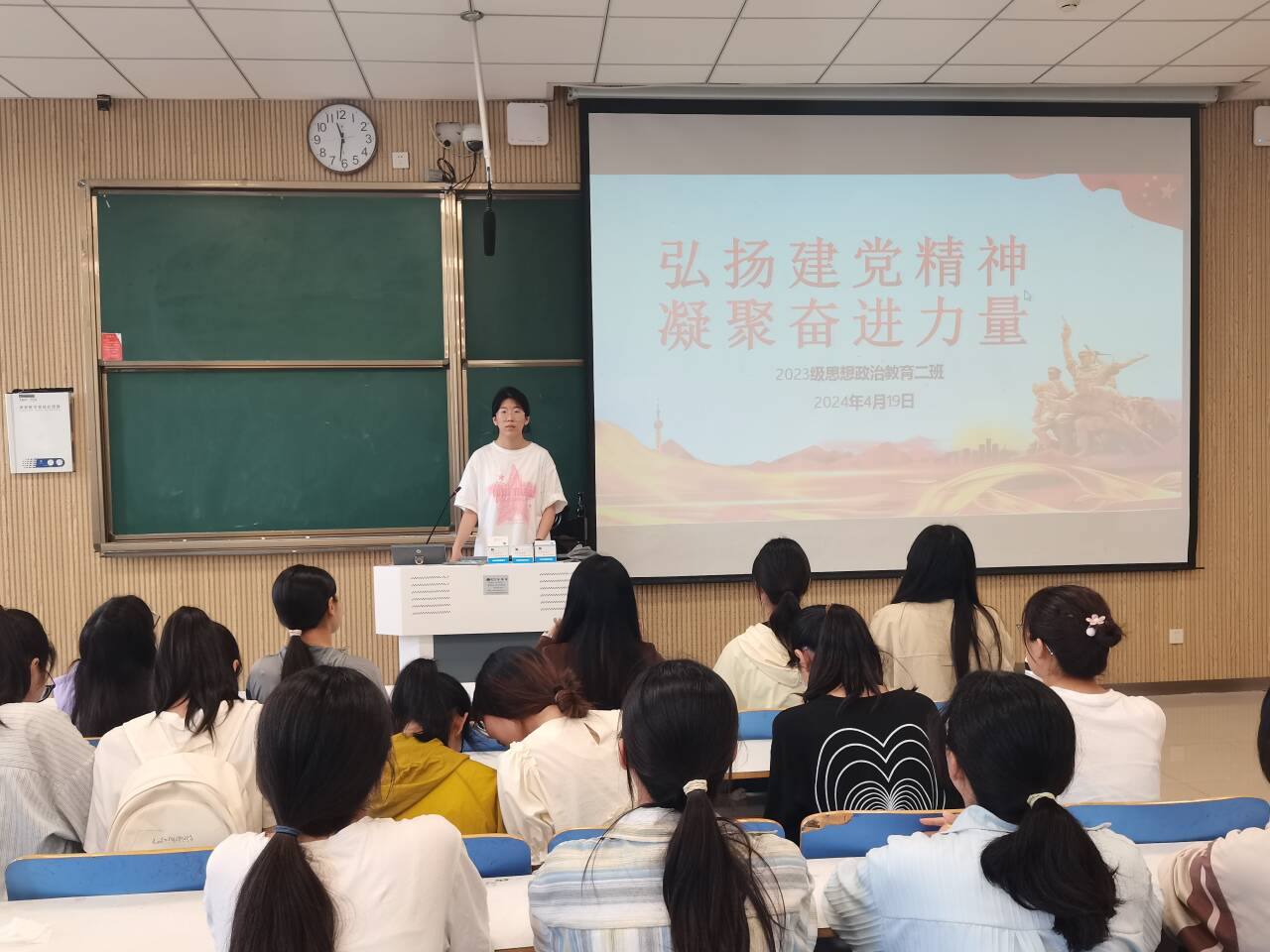 为弘扬伟大建党精神,确保广大青年大学生始终坚持听党话、跟党走,4月16日下午,beat365亚洲版官网2023级思想政治教育二班在社科楼515教室召开“弘扬建党精神,凝聚奋进力量”主题团课。本次主题团课由团支书王慜初主持,全体二班同学参加。