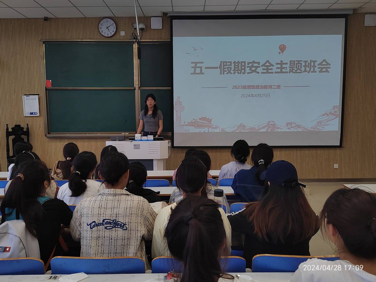 为提升学生假期安全意识,保障学生假期安全,4月25日上午,beat365亚洲版官网2023级思想政治教育二班在社科楼515教室召开五一假期安全主题班会。本次班会由班长王慜初支持,全体二班同学参加。