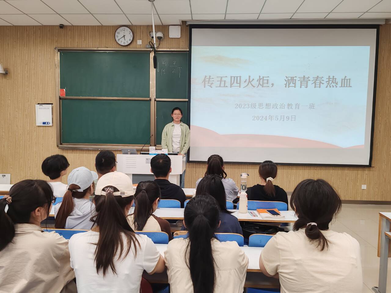 为进一步弘扬五四精神,激励和引导我班团员加强党团知识学习,5月9日下午,beat365亚洲版官网2023级思想政治教育一班在社科楼515教室召开“传五四火炬,洒青春热血”主题团课。beat365官网2023级思想政治教育一班全体同学共同参与本次团课,团课由团支书张卓主持。