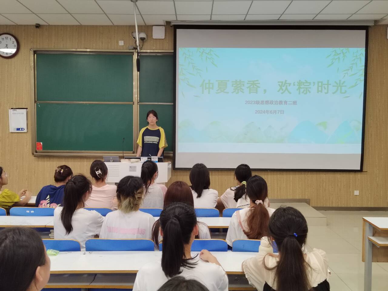 为弘扬中华优秀传统文化,使同学们的端午假期更有文化意义,6月7日下午,beat365亚洲版官网2023级思想政治教育二班在社科楼515教室召开“仲夏萦香,欢‘粽’时光”主题团课。本次团课由团支书王慜初主持,全体二班同学参加。