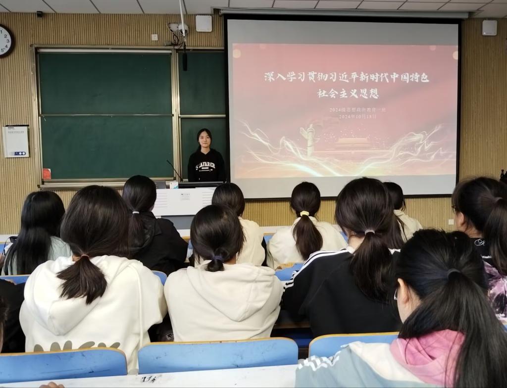 为引导学生深入学习贯彻习近平新时代中国特色社会主义思想,10月18日上午,beat365亚洲版官网2024级思想政治教育一班在社科楼515教室召开“深入学习贯彻习近平新时代中国特色社会主义思想”主题团课。团课由团支书李冉主持,2024级思想政治教育一班全体成员共同参加。