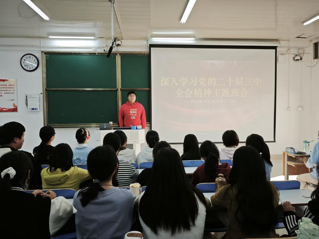为深入学习党的二十届三中全会精神,深刻领会全面深化改革、推进中国式现代化的重大意义和战略部署,10月23日,beat365亚洲版官网 2024 级思想政治教育二班于社科楼514教室开展了 “深入学习党的二十届三中全会精神” 主题班会。本次班会由班长王志颖主持,二班全体同学共同参与。