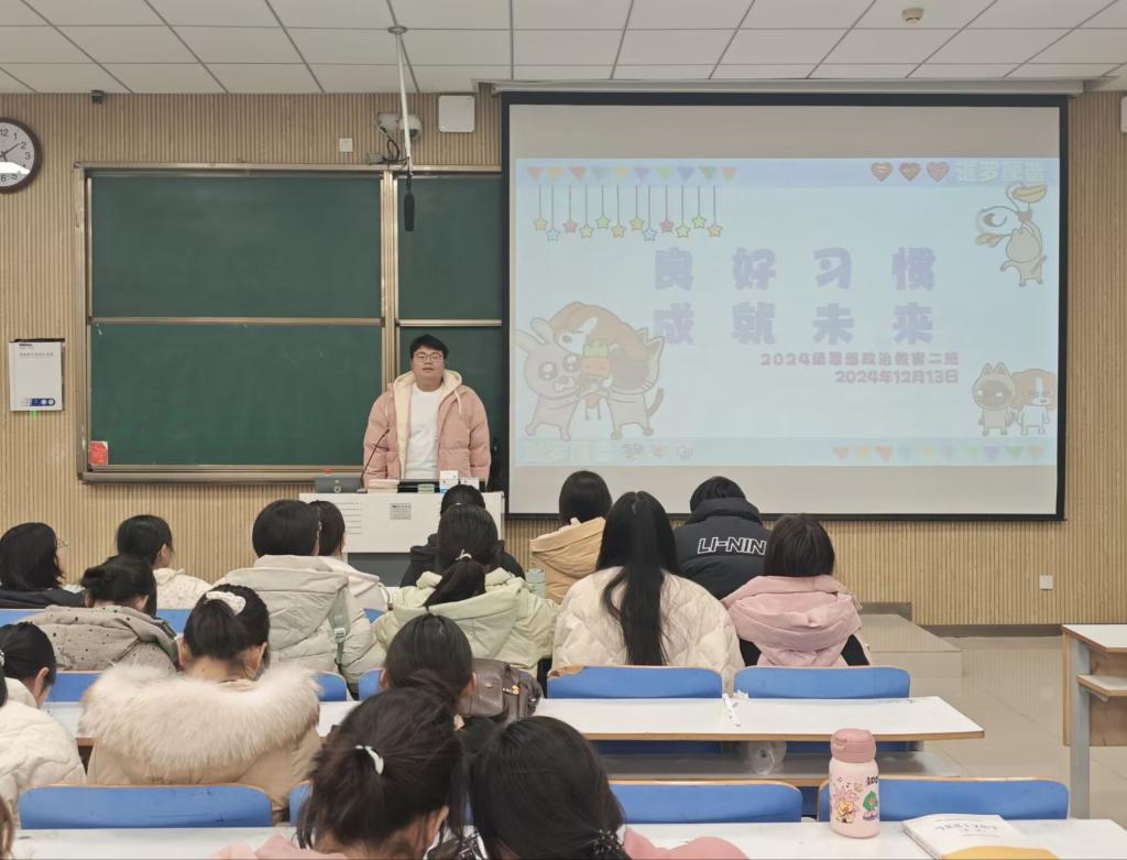 为引导学生养成良好的学习生活习惯,提升自我管理能力,12月12日下午,beat365亚洲版官网2024级思想政治教育二班在社科楼515教室举办了“良好习惯,成就未来”主题班会。本次班会由班长王志颖主持,二班全体同学共同参与。