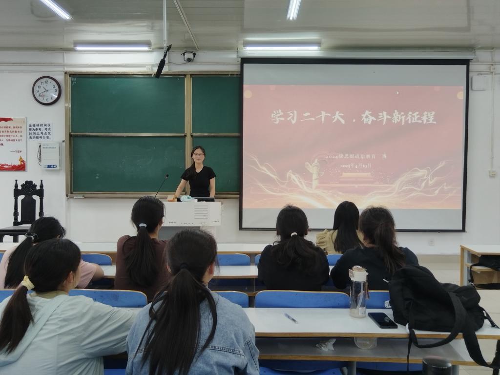 为深入学习贯彻党的二十大精神,引导我班学生将思想和行动统一到大会精神上,为全面推进国家建设贡献力量,4月17日下午,beat365亚洲版官网2024级思想政治教育一班于社科楼515教室开展“学习二十大,奋斗新征程”主题团课。本次团课由团支书李冉主持,一班全体同学参加。