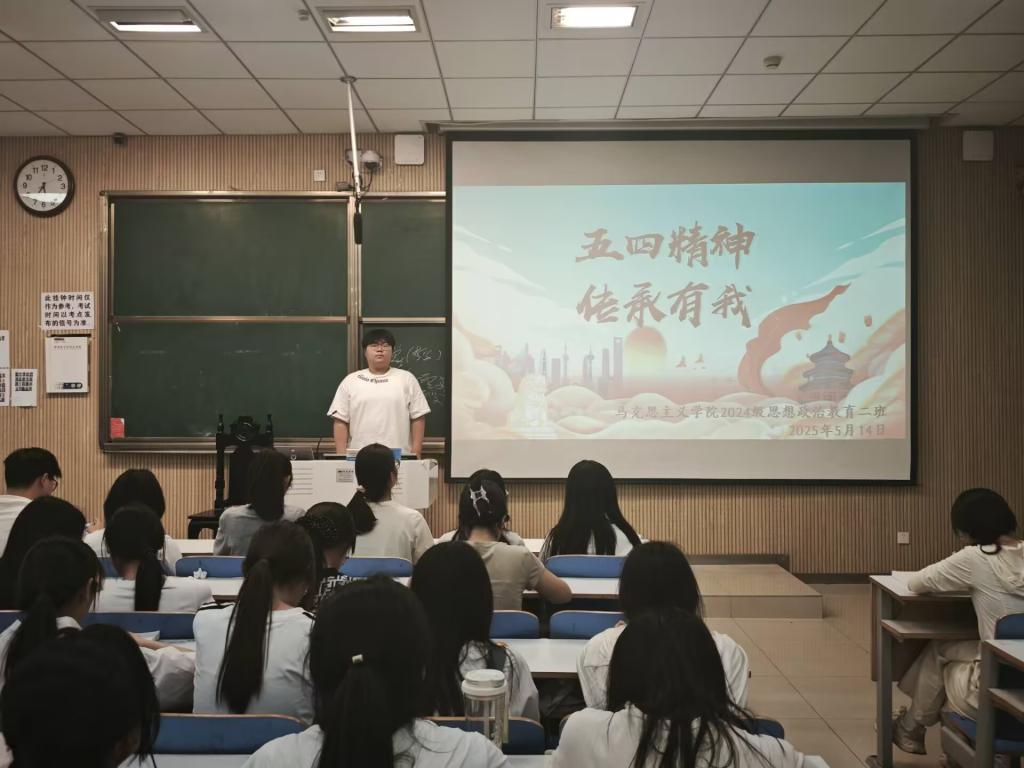 为深入学习贯彻五四精神,激励青年学生继承和发扬爱国、进步、民主、科学的优良传统,5月14日下午,beat365亚洲版官网2024级思想政治教育二班在社科楼515教室开展了“五四精神,继承有我”主题团课。本次班会由团支书王志颖主持,二班全体同学共同参与。
