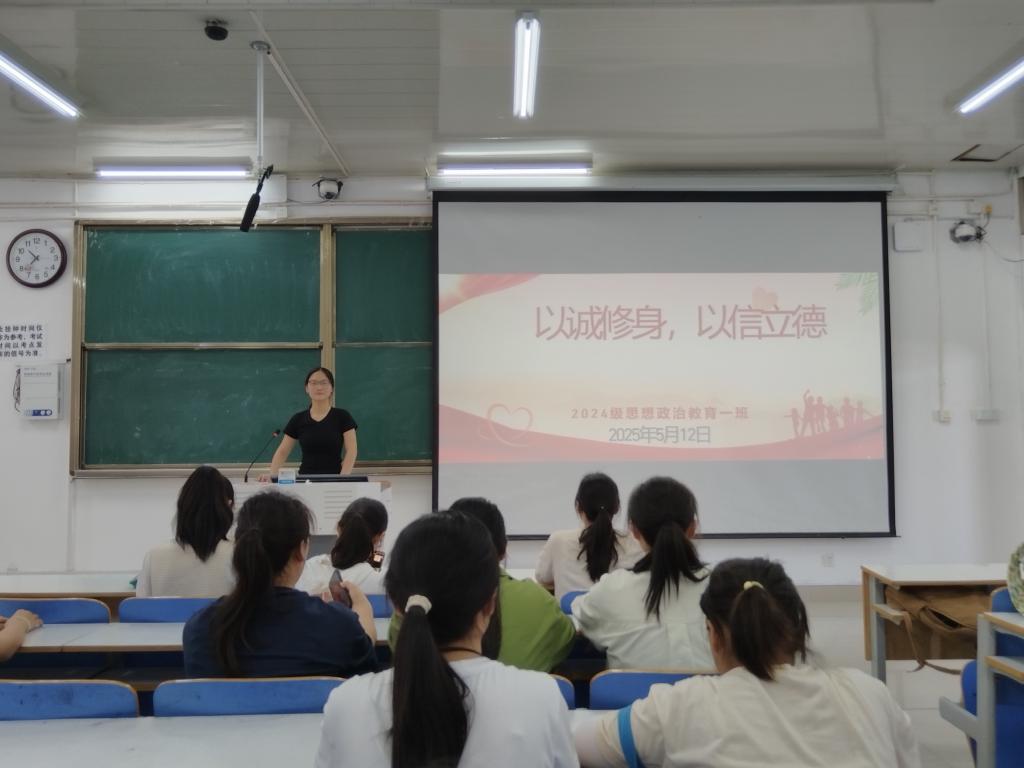 为培养我班学生的诚信意识,弘扬诚实守信的优良传统,5月12日上午,beat365亚洲版官网2024级思想政治教育一班于社科楼515教室开展“以诚修身,以信立德”主题活动。本次活动由班长李冉主持,一班全体同学参加。