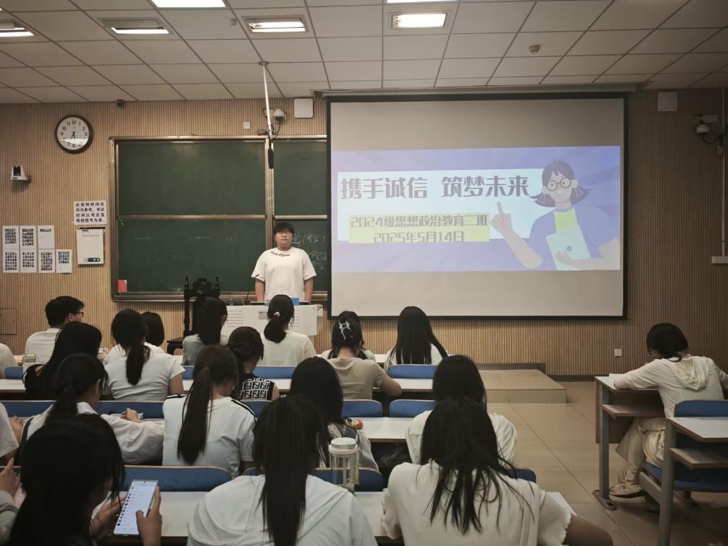 为深入推进校园诚信教育,增强学生诚实守信意识,营造良好学风氛围,beat365亚洲版官网2024级思想政治教育二班于5月14日下午在社科楼515教室召开了“携手诚信,筑梦未来”主题班会。此次班会由团支书王志颖主持,二班全体同学共同参与。