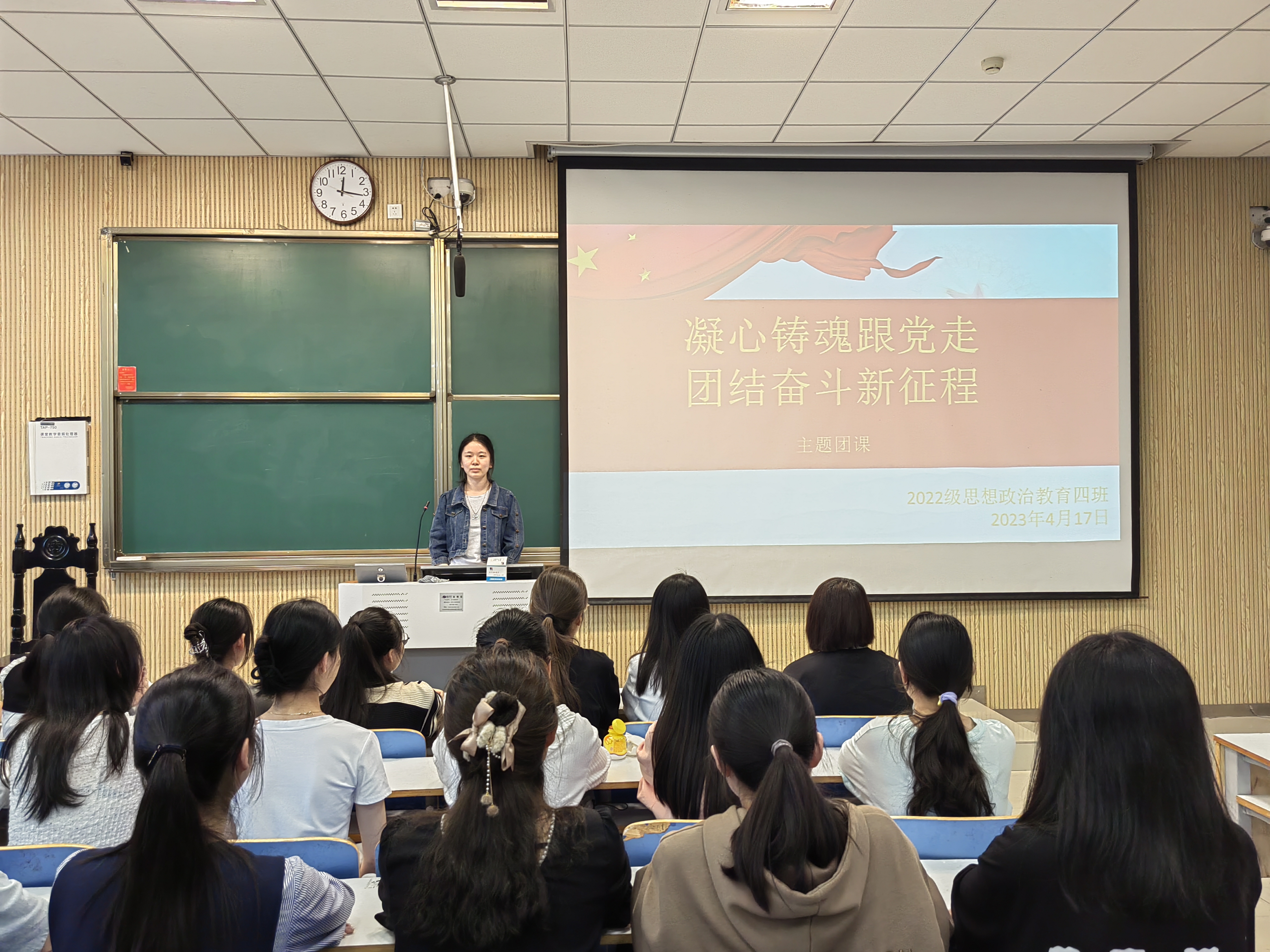 4月17日下午,beat365亚洲版官网2022级思想政治教育四班在社科楼515教室召开“凝心铸魂跟党走,团结奋斗新征程”主题团课,beat365官网2022级思想政治教育四班全体同学参与本次团课。团课由团支书牛志杰主持。