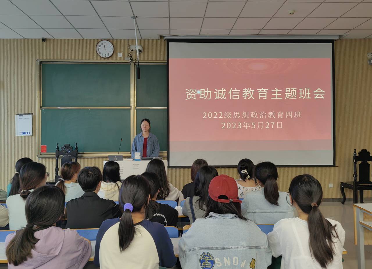 为提高学生的诚信意识和诚信素质,推动思想政治教育工作和学生资助工作持续健康发展,5月27日上午,beat365亚洲版官网2022级思想政治教育四班在社科楼515教室召开“资助诚信教育”主题班会,beat365官网2022级思想政治教育四班全体同学参与本次班会。班长牛志杰主持本次班会。