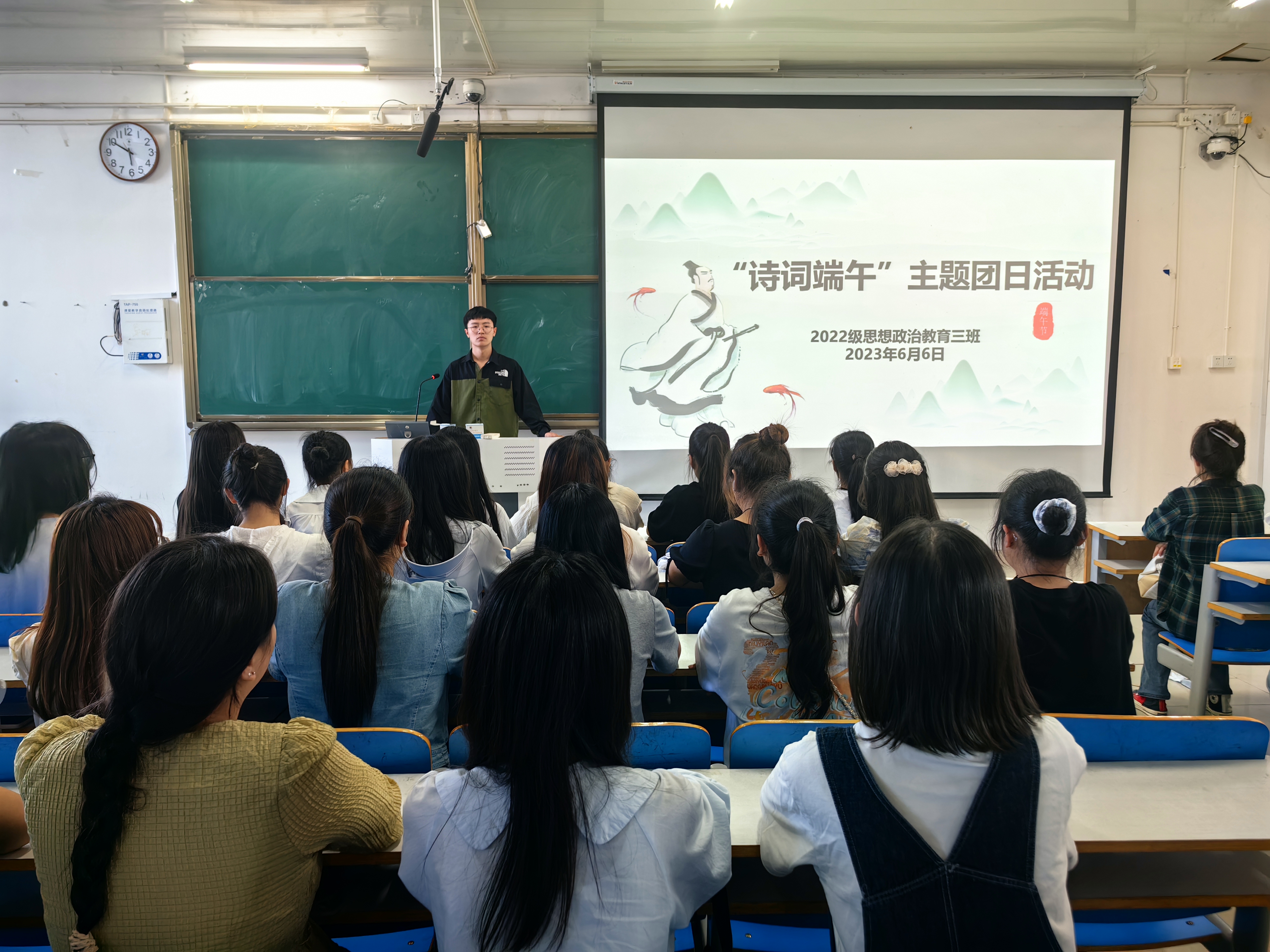 6月6日下午,beat365亚洲版官网2022级思想政治教育三班在社科楼514教室开展“诗词端午”主题团日活动。beat365官网2022级思想政治教育三班全体成员共同参加此次团日活动。活动由团支书余浩洋主持。