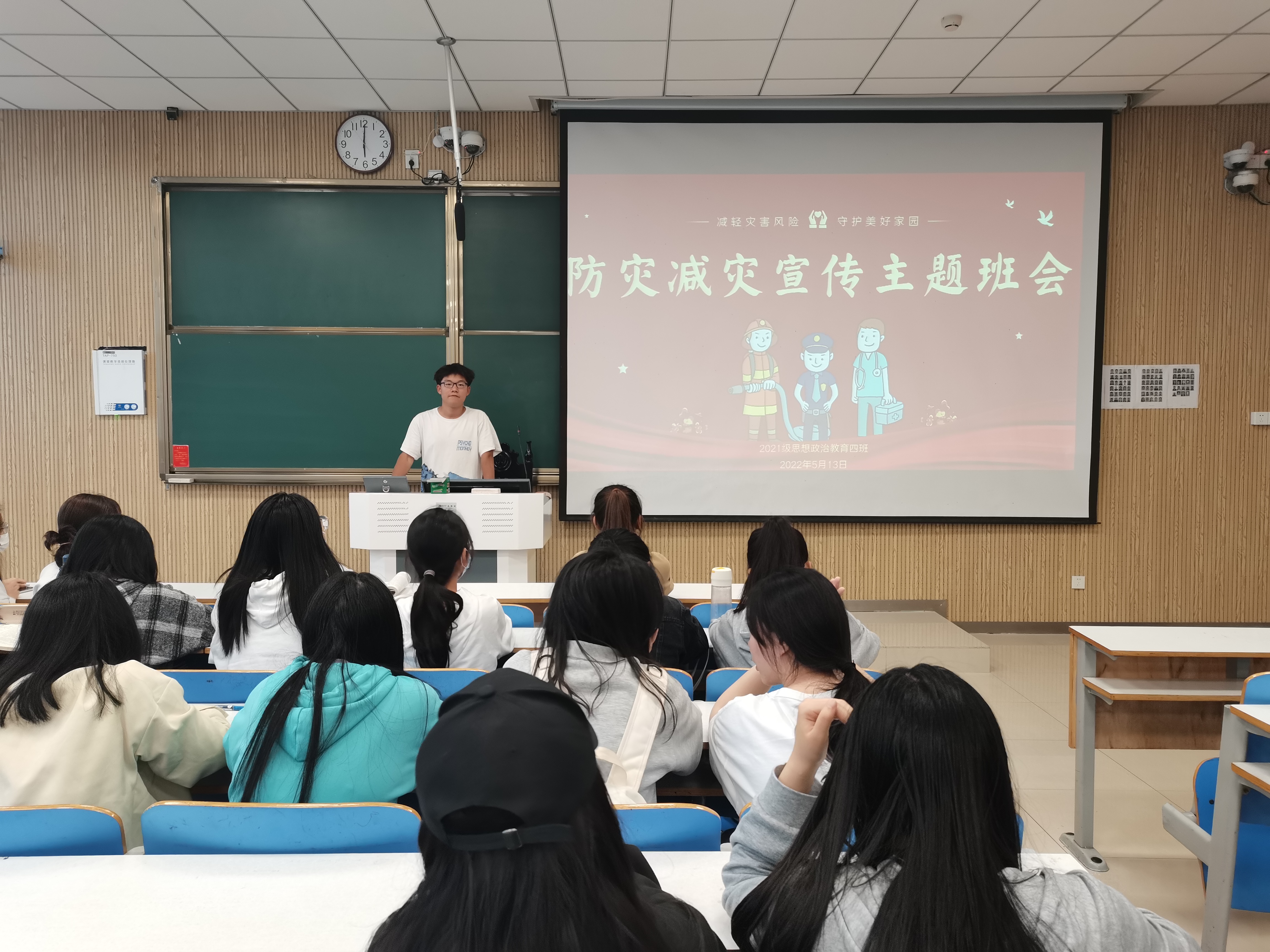 为增强同学们的防灾减灾意识,减轻自然灾害的风险,5月13日下午,beat365亚洲版官网2021级思想政治教育四班在社科楼515教室开展防灾减灾宣传主题班会。2021级思想政治教育四班全体同学参加本次班会。班会由副班长常康哲主持。