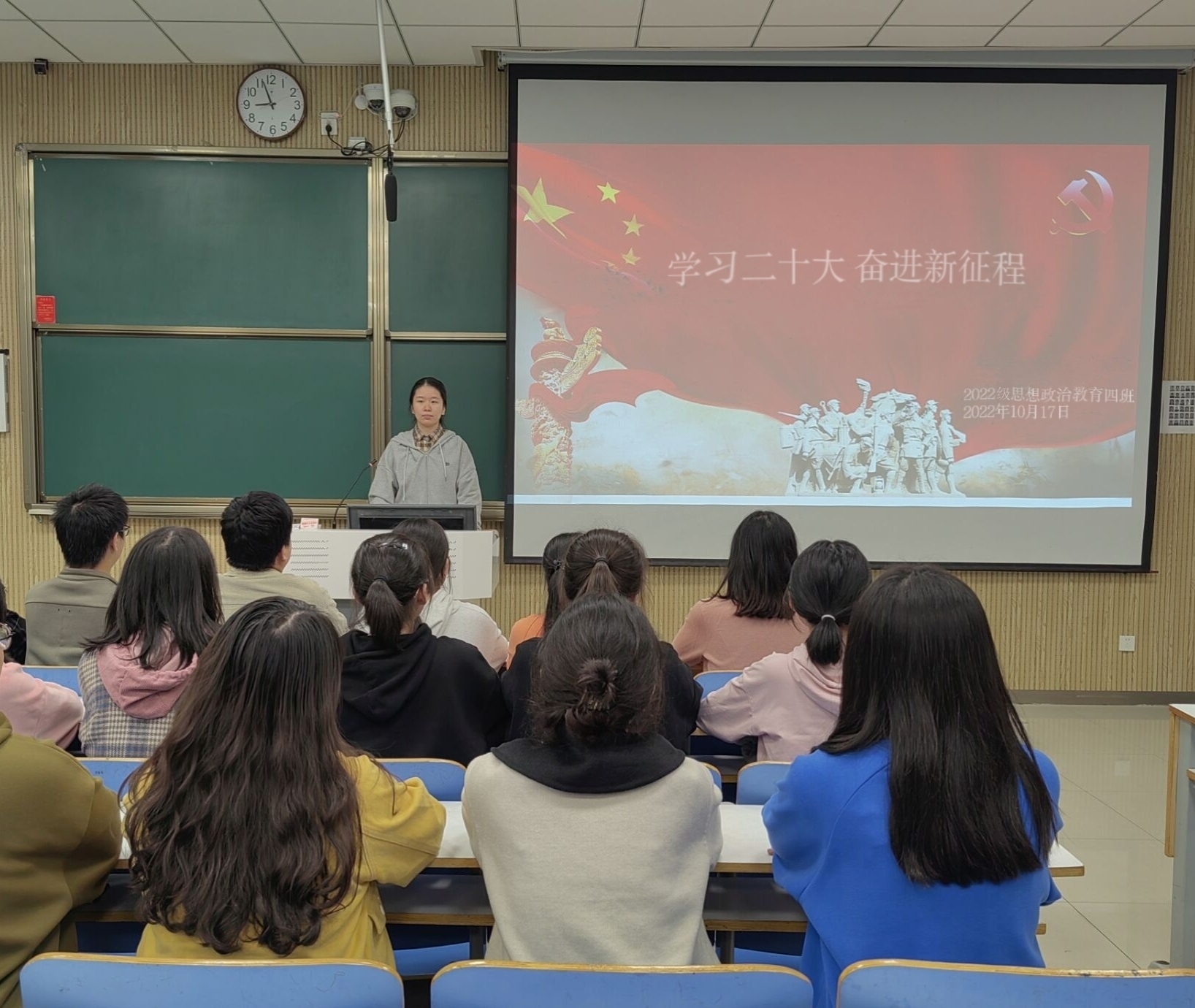 为深入学习中国共产党第二十次全国代表大会精神,把握新时代对青年的要求。10月17日下午,beat365亚洲版官网2022级思想政治教育四班在社科楼515召开“学习二十大,奋进新征程”的主题班会。会议由团支书牛志杰主持。