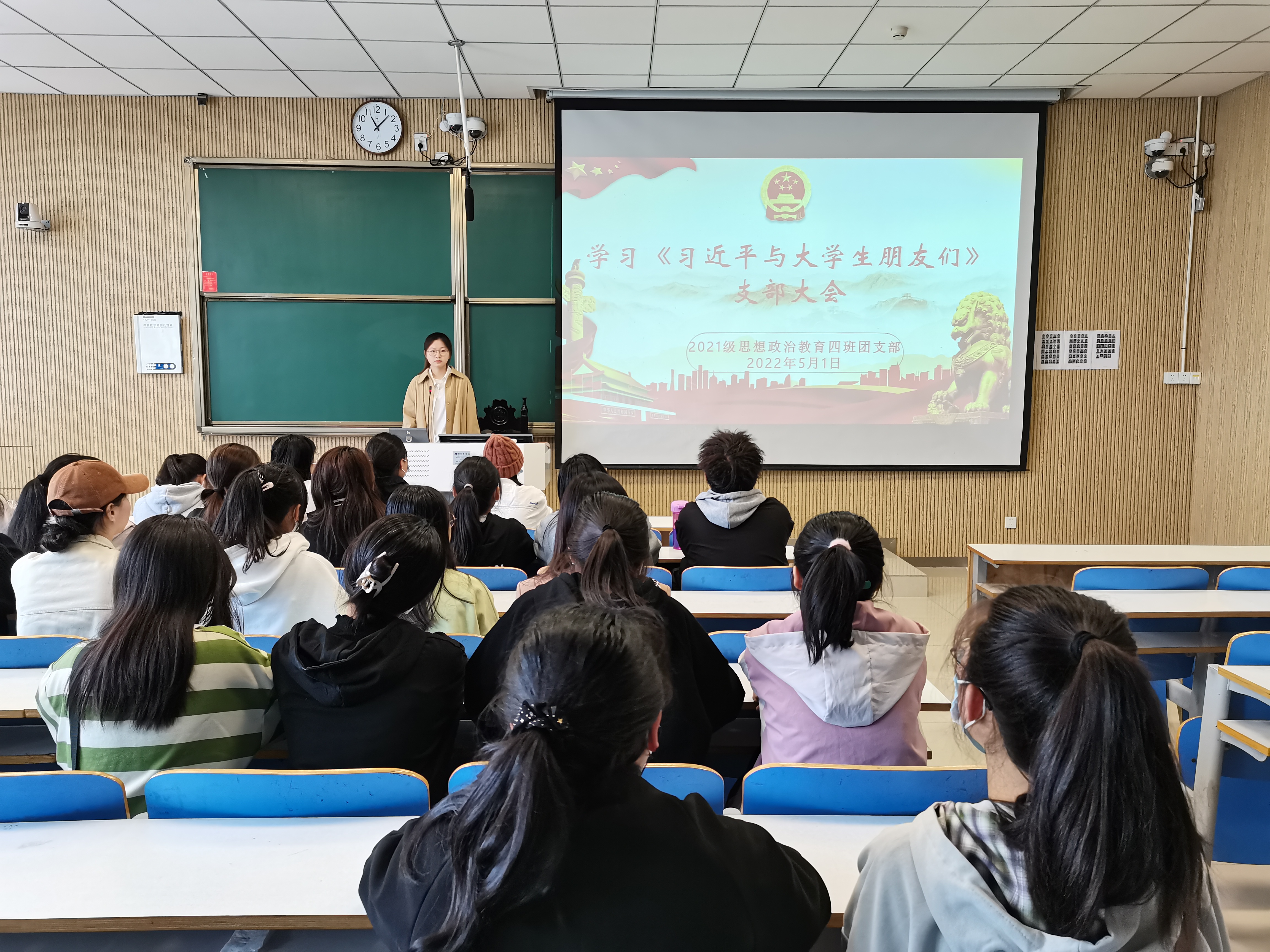 为追寻领袖足迹,聆听时代声音,5月1日上午,beat365亚洲版官网2021级思想政治教育四班在社科楼515教室开展学习《习近平与大学生朋友们》支部大会。2021级思想政治教育四班全体团员共同参加本次会议。会议由团支书刘珂含主持。