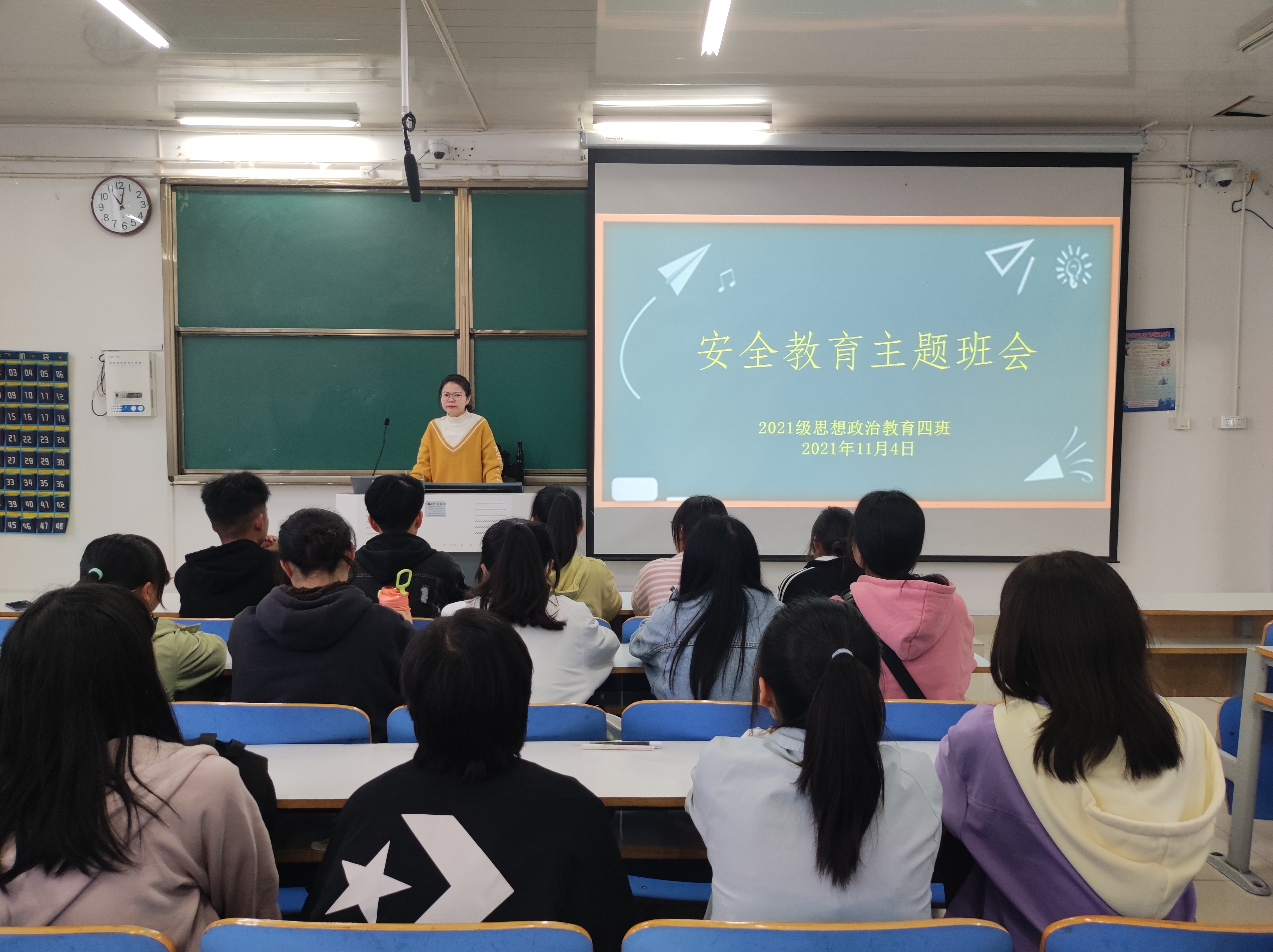 根据《关于开展学生安全隐患大排查工作的通知》精神,11月4号上午,beat365亚洲版官网2021级思想政治教育四班安全教育主题班会在社科楼514教室开展。2021级思想政治教育四班全体同学参加了本次班会。班会由辅导员高小佳主持。