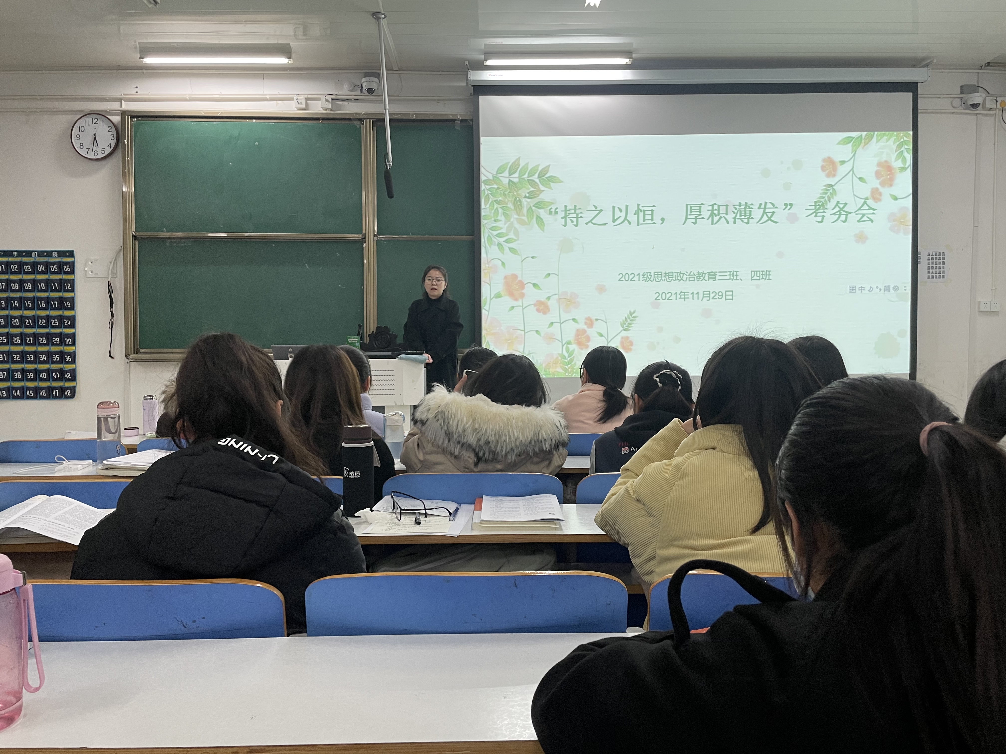 11月29日下午,beat365亚洲版官网2021级思想政治教育四班在社科楼516教室召开期末考务会。辅导员高小佳及2021级思想政治教育四班全体同学参加此次班会,班会由辅导员高小佳主持。