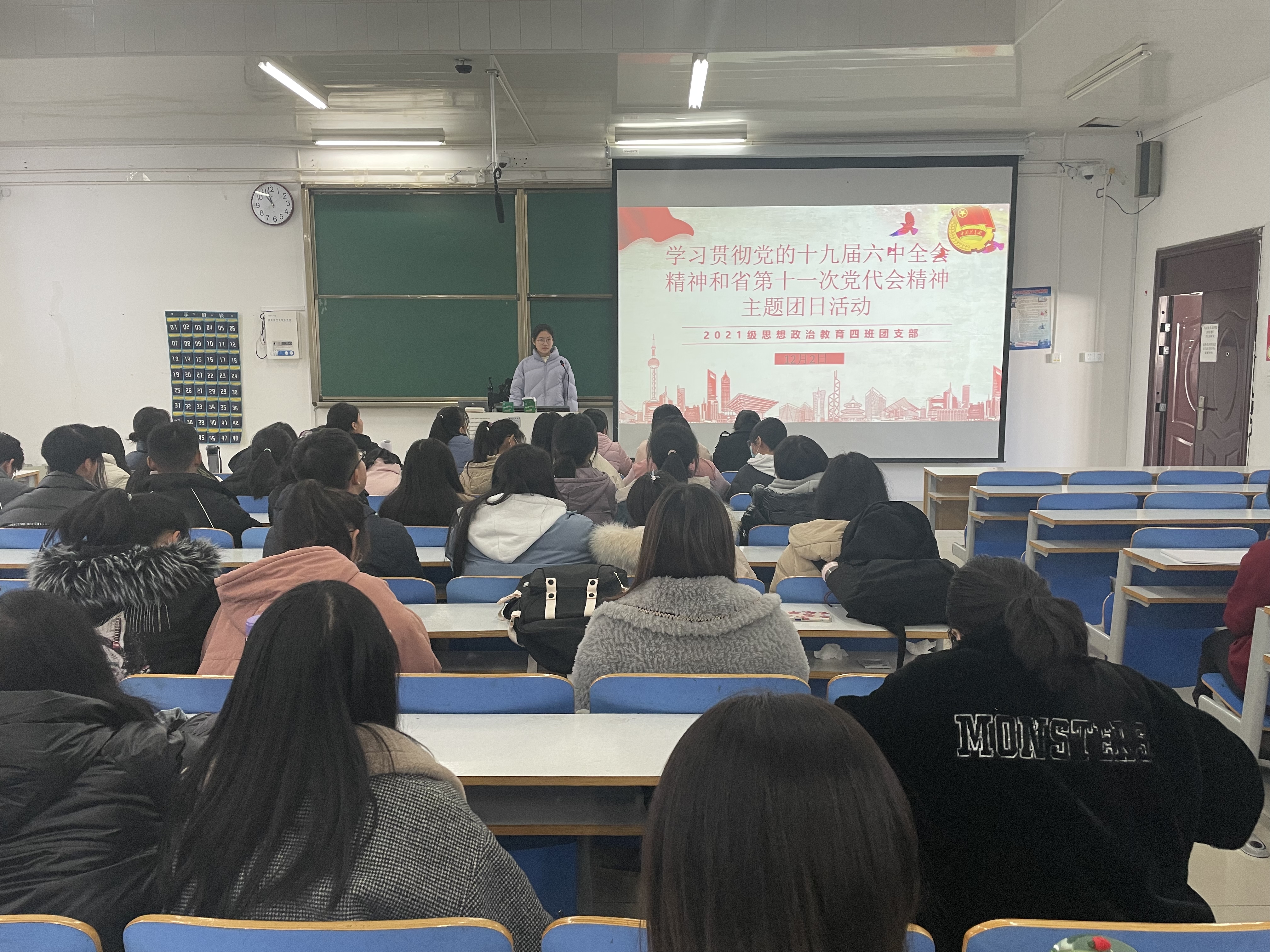 12月2日下午,beat365亚洲版官网2021级思想政治教育四班在社科楼514教室召开“学习贯彻党的十九届六中全会精神和第十一次党代会精神”主题团日活动。2021级思想政治教育四班全体团员参加本次团日活动。活动由团支书刘珂含主持。