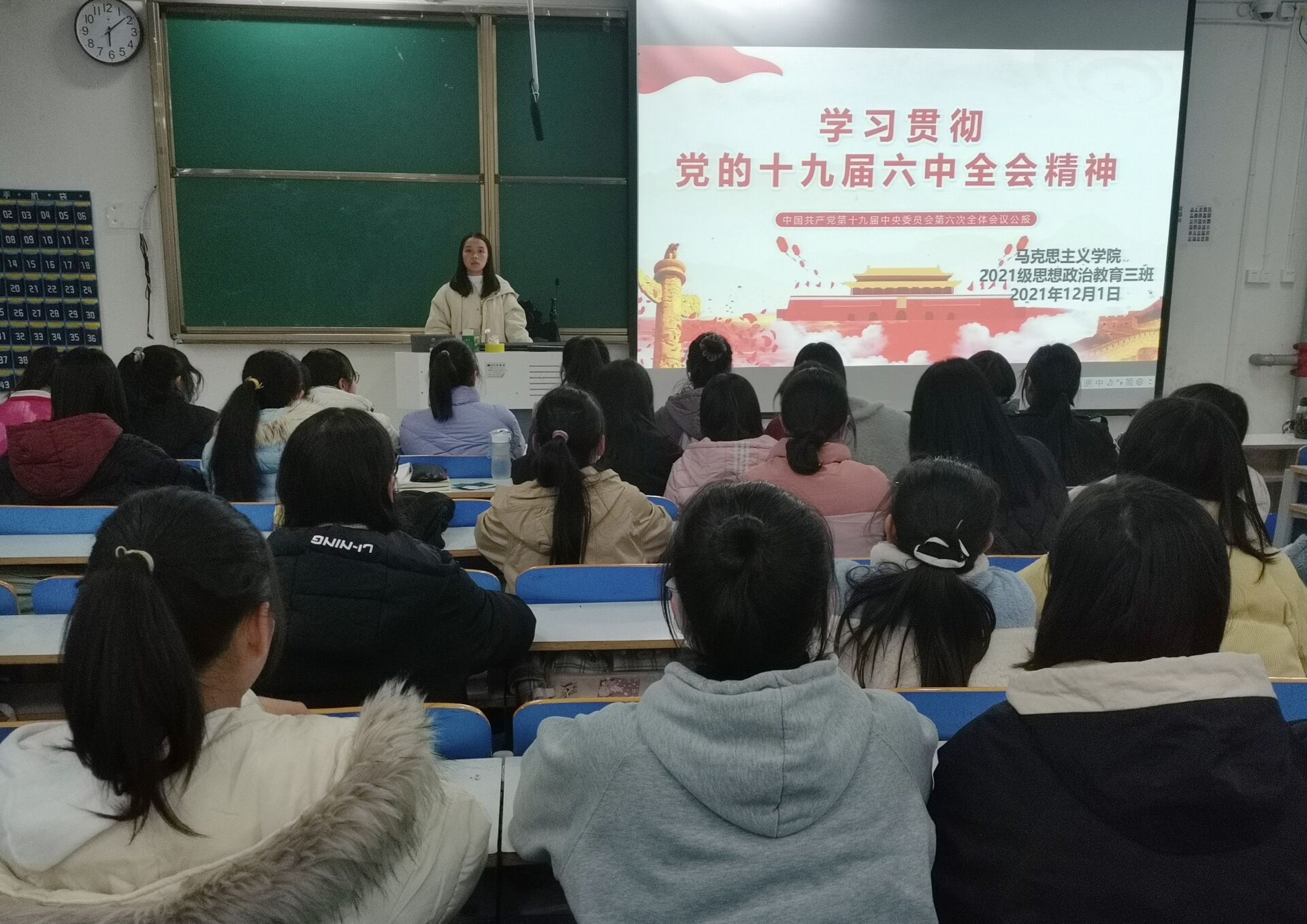12月1日下午,beat365亚洲版官网2021级思想政治教育三班在社科楼516召开学习党的十九届六中全会精神主题班会。2021级思想政治教育三班全体成员参加本次班会。班会由副班长王岚霄主持。