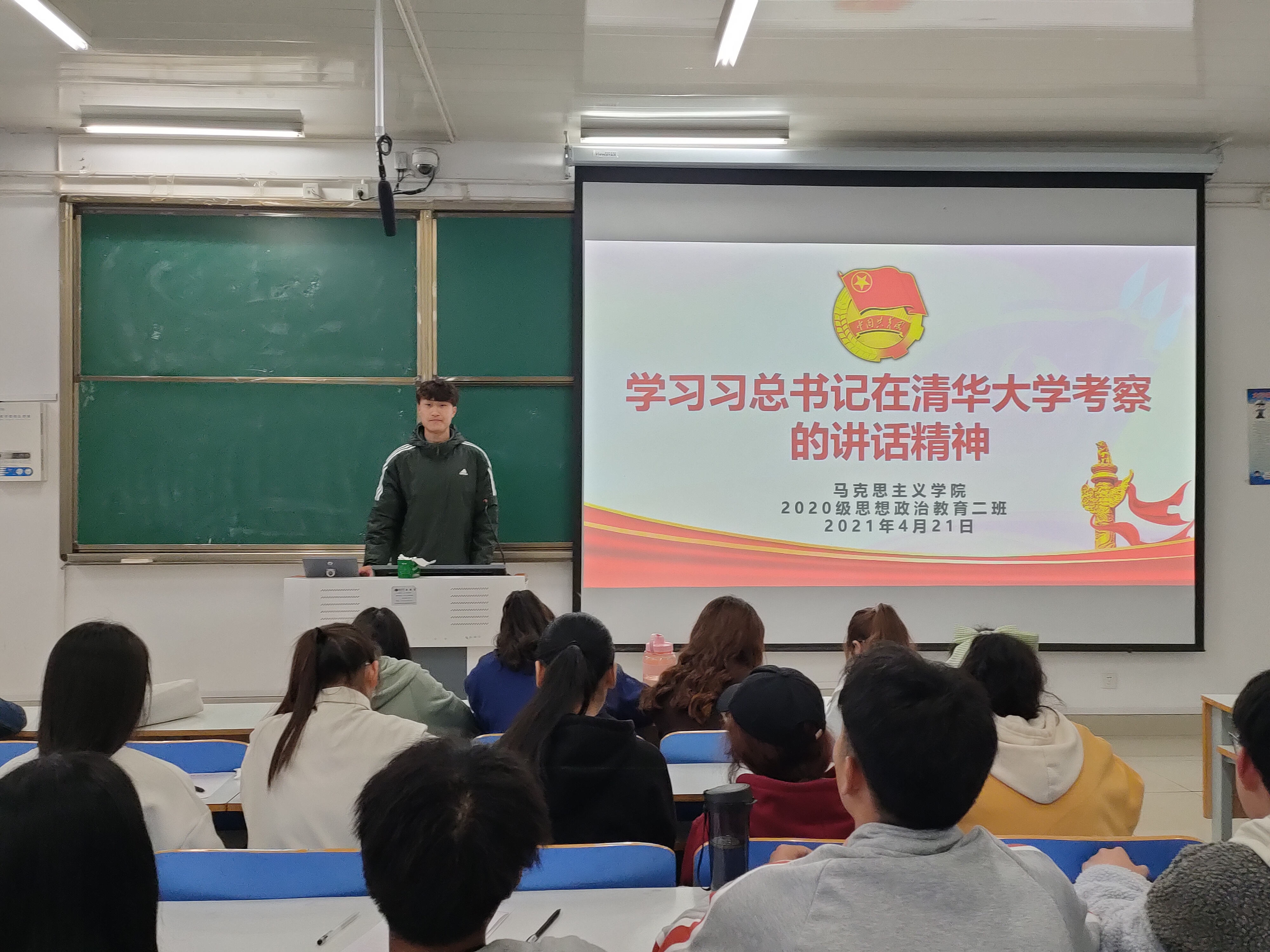 为深入学习贯彻习近平总书记重要讲话精神,进一步统一思想、提高认识,4月21日,beat365亚洲版官网2020级思想政治教育二班、定向二班在社科楼514教室顺利召开学习习近平总书记在清华大学考察时的重要讲话精神主题班会。2020级思想政治教育二班、定向二班全体学生共同参加了本次班会。班会由班长陈宇航主持。