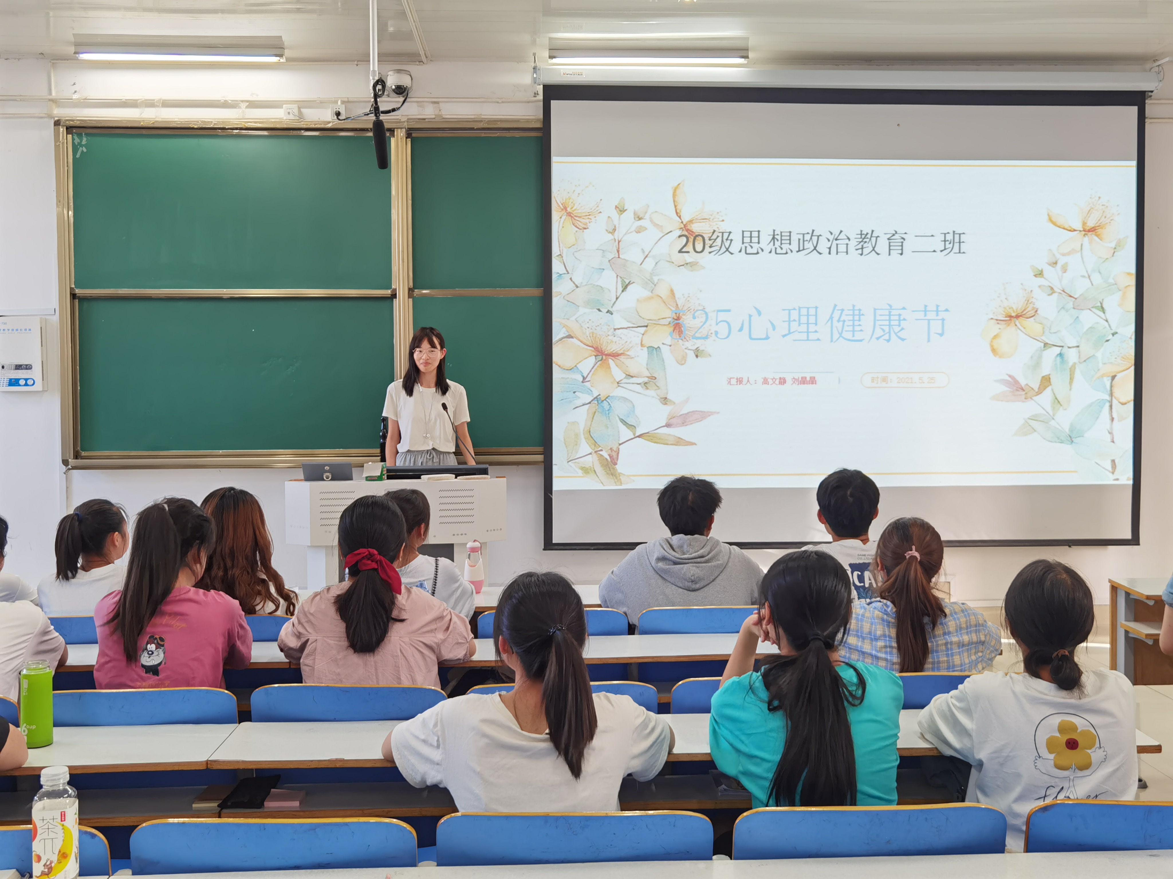 为大力营造“525,我爱我”节日氛围,进一步提高我班同学对自身心理健康的关注程度,5月25日下午,beat365亚洲版官网2020级思想政治教育二班、定向二班“525心理健康节”主题班会在社科楼514教室顺利召开。二班、定向二班全体学生参与班会。班会由心理委员刘晶晶、高文静主持。