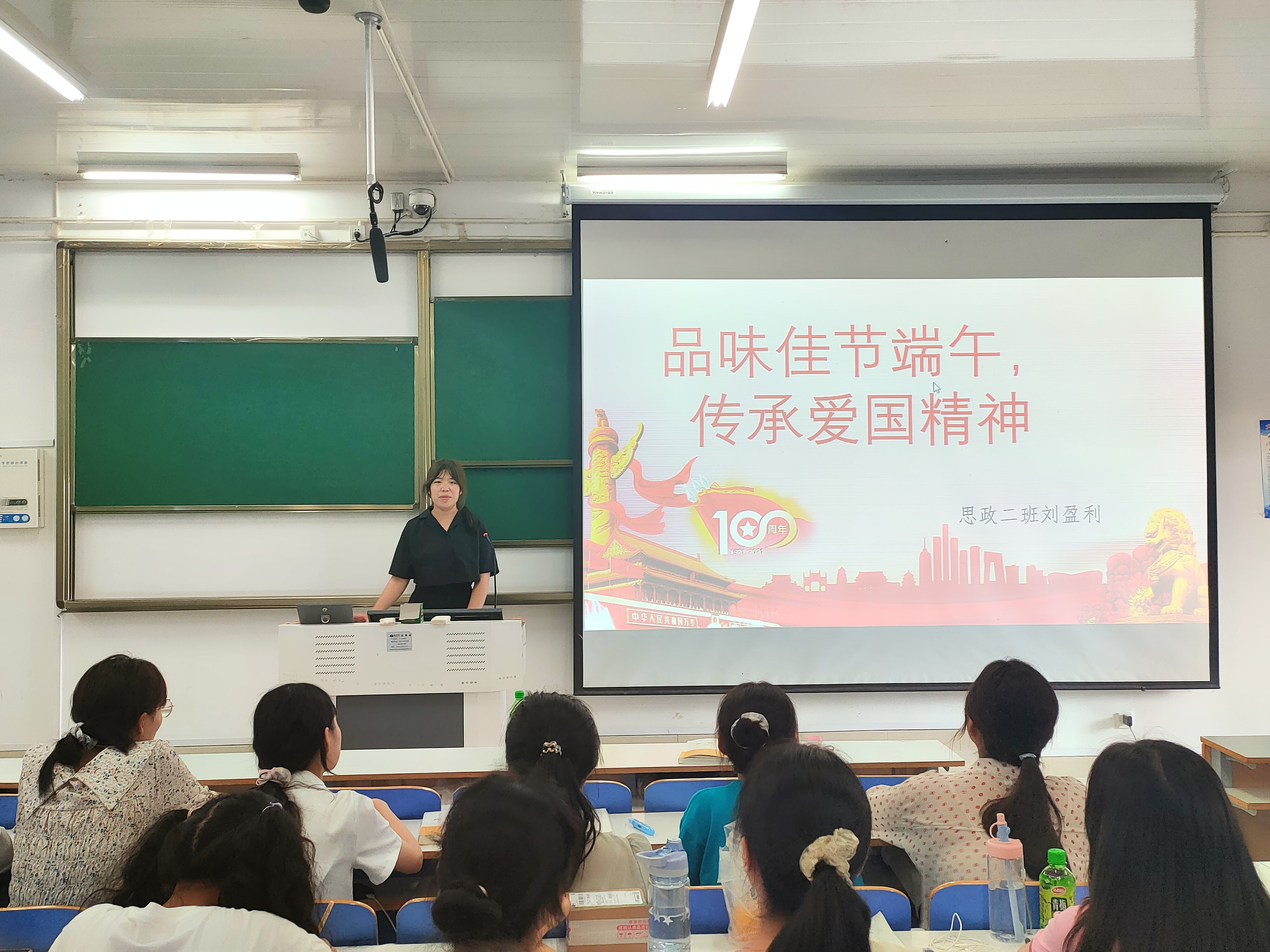 6月11日下午,beat365亚洲版官网2020级思想政治教育二班、定向二班在社科楼514教室顺利开展“品味佳节端午,传承爱国精神”主题团课。辅导员陶青青及2020级思想政治教育二班、定向二班全体团员共同参与本次团课。团课由组织委员刘盈利主持。