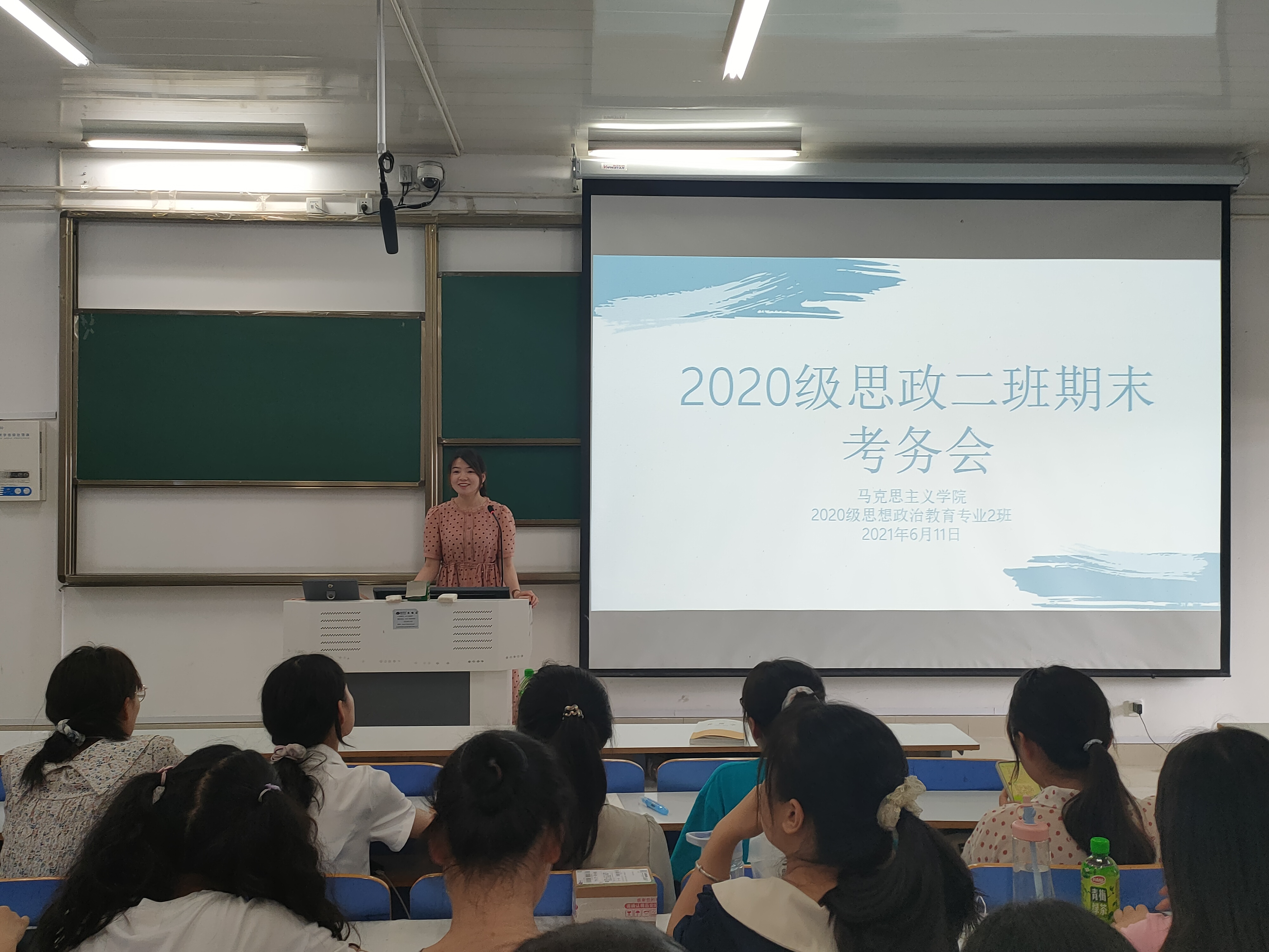 为严肃期末考试纪律,帮助我班同学制定科学合理的复习计划,6月11日下午,beat365亚洲版官网2020级思想政治教育二班、定向二班期末考务会在社科楼514教室顺利召开。辅导员陶青青及二班、定向二班全体同学参与本次班会。会议由辅导员陶青青主持。