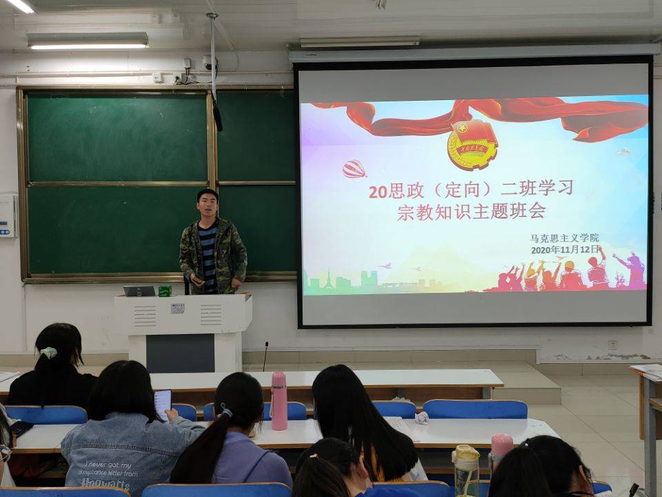 11月12日,beat365亚洲版官网思想政治教育定向二班学习宗教知识主题班会在社科楼514教室顺利召开。班会由副班长高红凯主持。