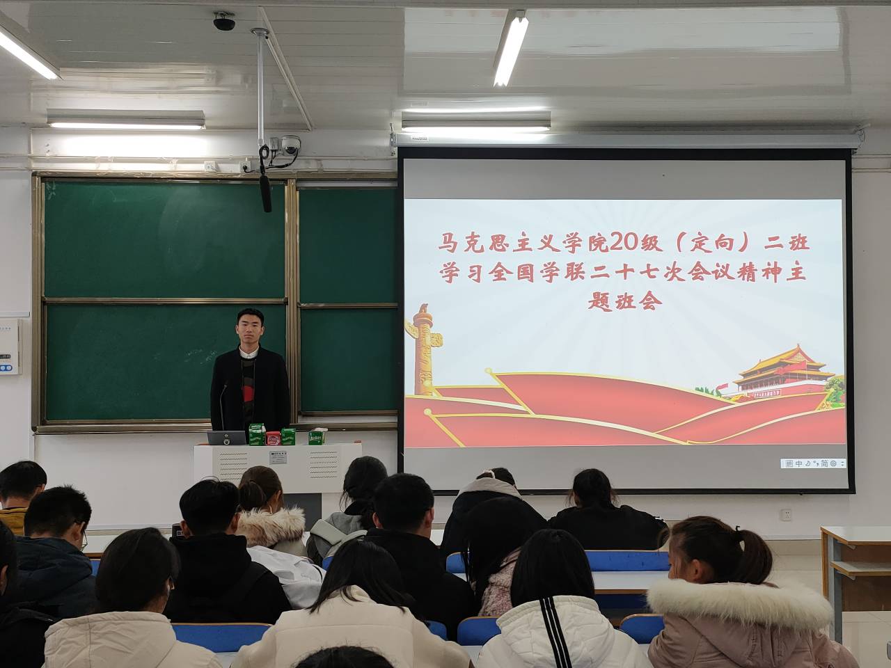 会上,高红凯带领同学们认真学习了全国学联二十七大重要内容和习近平主席对全国学联的重要指示精神。学习结束后,同学们根据大会和习近平主席重要致词内容进行热烈讨论。张明睿认为,广大青年应树立远大理想,同时要培养求真务实、脚踏实地的学习精神。其他与会同学也表示要认真学习、磨炼个人能力、加强个人思想品德修养。最后,高红凯对会议作了总结,他指出,全国学联在党的领导下,团结和引导全国广大学生刻苦学习、勇于实践,在培养新时代青年中起到了重要作用。习近平主席对全国学联二十七大的贺信体现了党和国家对青年成长发展的关注。作为新时代青年,要努力学习科学文化知识、锤炼过硬本领,自觉肩负起中华民族伟大复兴的历史使命。