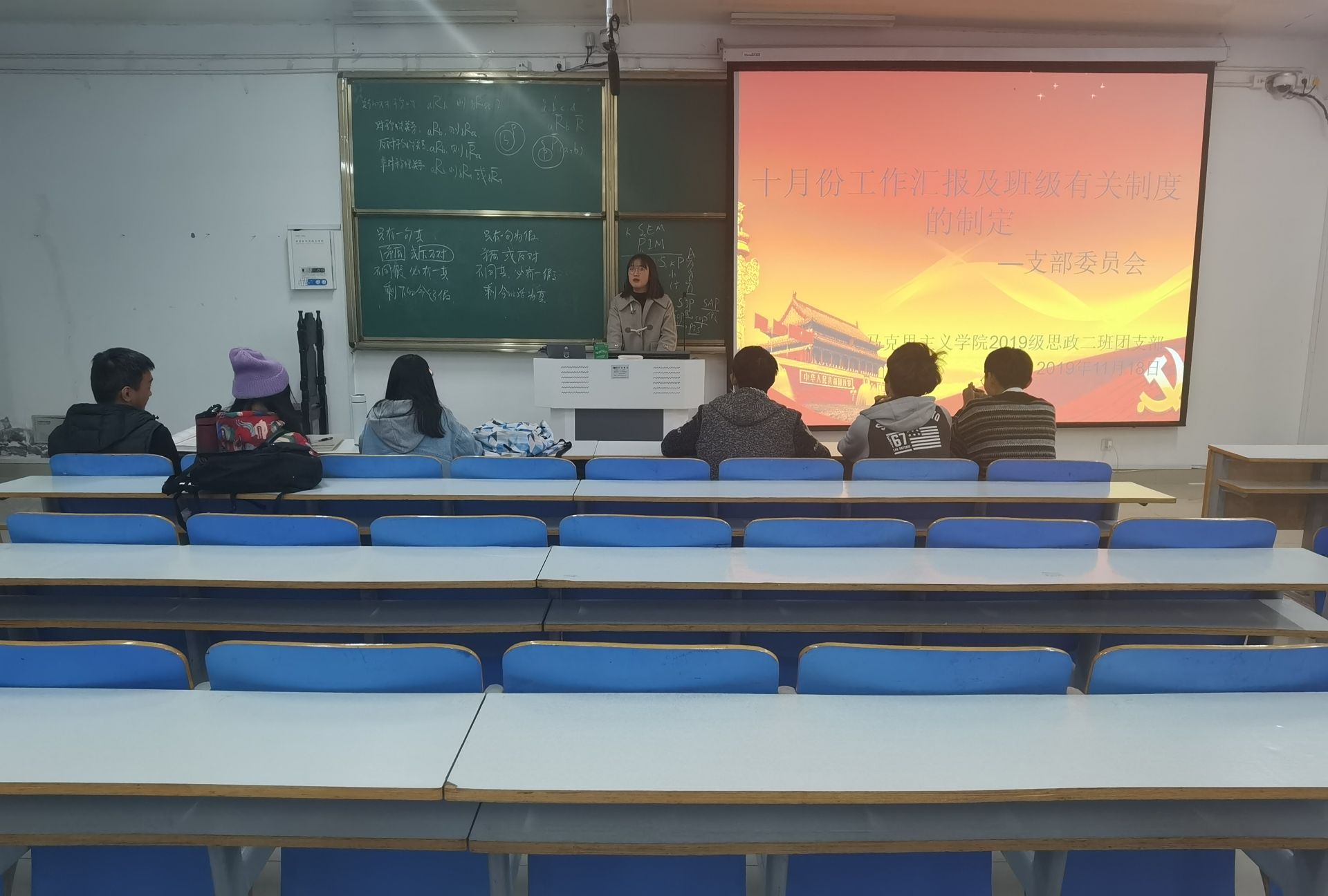 首先,孙雅娴提出了同学们团课笔记不认真,团课态度不积极等问题,希望支部委员能做好模范带头作用,引导大家共同进步。接着,她详细说明了十佳环保宿舍活动的参赛评分细则,鼓励同学们积极参赛。最后,吕昂为支部委员宣读beat365亚洲版官网思想政治教育二班晚自习规章制度细则,并要求支部委员以身作则,树立踏实认真的优良学风。