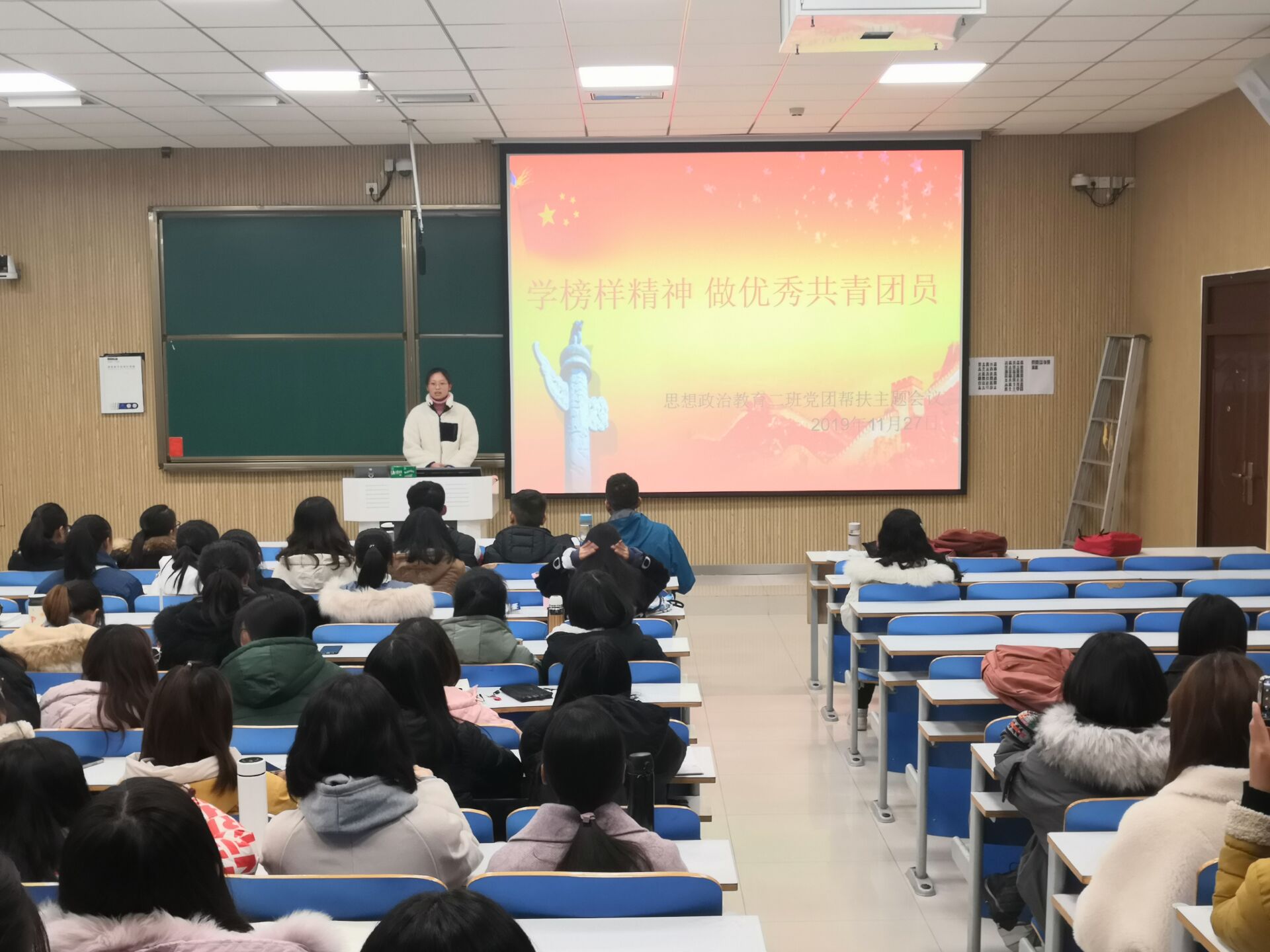为解决学生实际问题,促进党团深入交流,11月27日下午,beat365亚洲版官网思想政治教育二班在社科楼515教室召开以“学榜样精神,做优秀共青团员”为主题的党团帮扶会议。beat365亚洲版官网思想政治教育二班全体学生共同参会。beat365亚洲版官网2016级青马学员张雅琼受邀参加本次会议,会议由团支书孙雅娴主持。