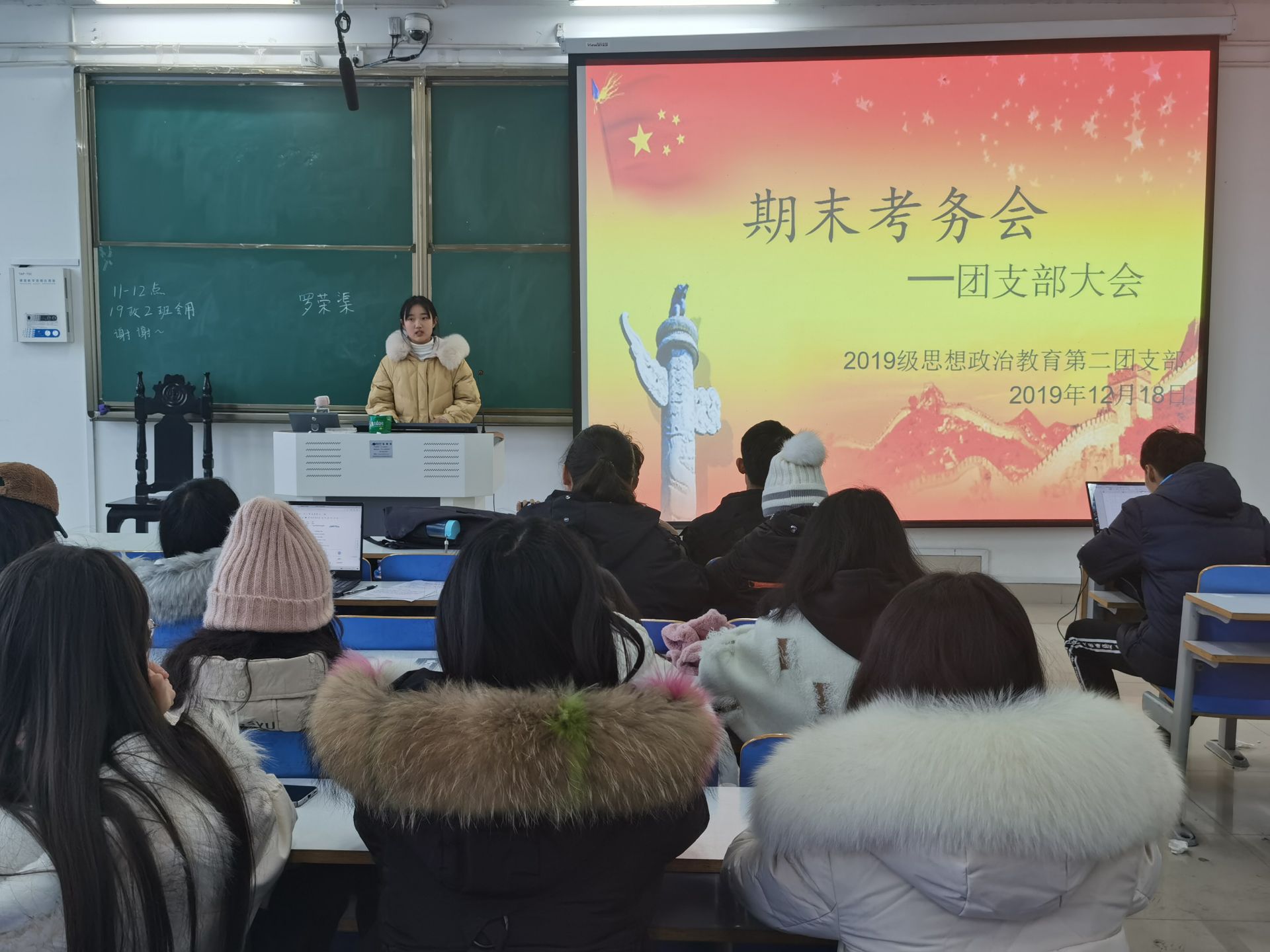 为严肃考风考纪、规范期末考试管理, 12月18日上午,beat365亚洲版官网2019级思想政治教育二班全体同学于社科楼514教室召开期末考务会。会议由团支书孙雅娴主持。
