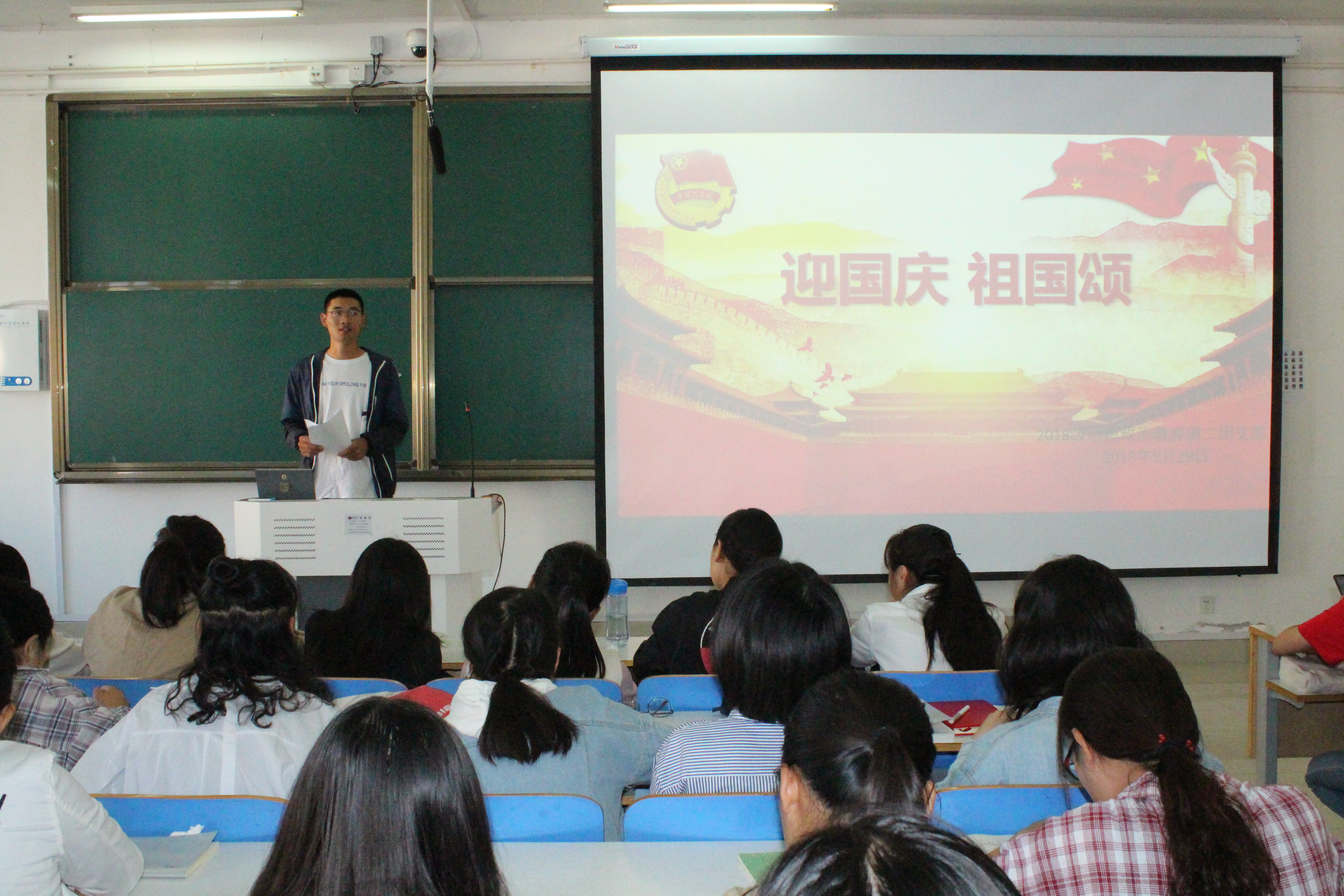 为纪念祖国成立69周年,激发beat365官网学子爱国热情,9月29日上午,beat365亚洲版官网2018级第二团支部召开“迎国庆、祖国颂”的主题班会。beat365官网2018级思想政治教育二班全体学生共同参加了本次班会。班会由班长杨康主持。