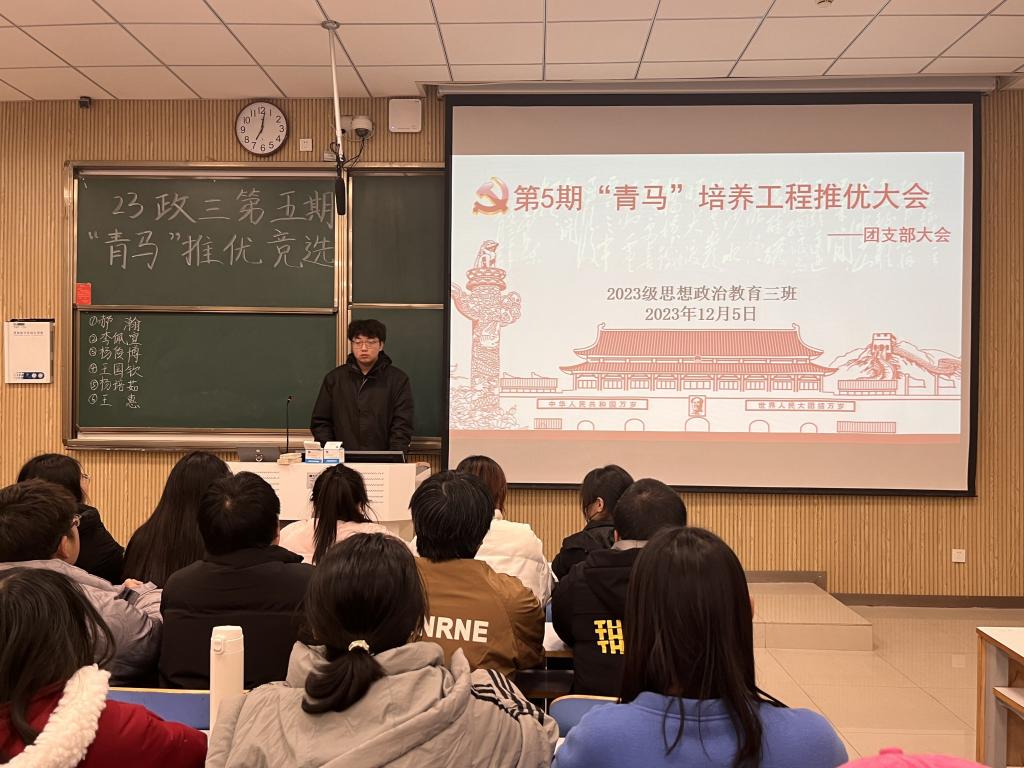 为提高大学生思想政治素养 ,12月5日下午,beat365亚洲版官网2023级思想政治教育三班在社科楼515教室召开“青年马克思主义者”培养工程推优大会。beat365官网2023级思想政治教育三班全体成员共同参加此次大会,大会由团支书郝瀚主持。