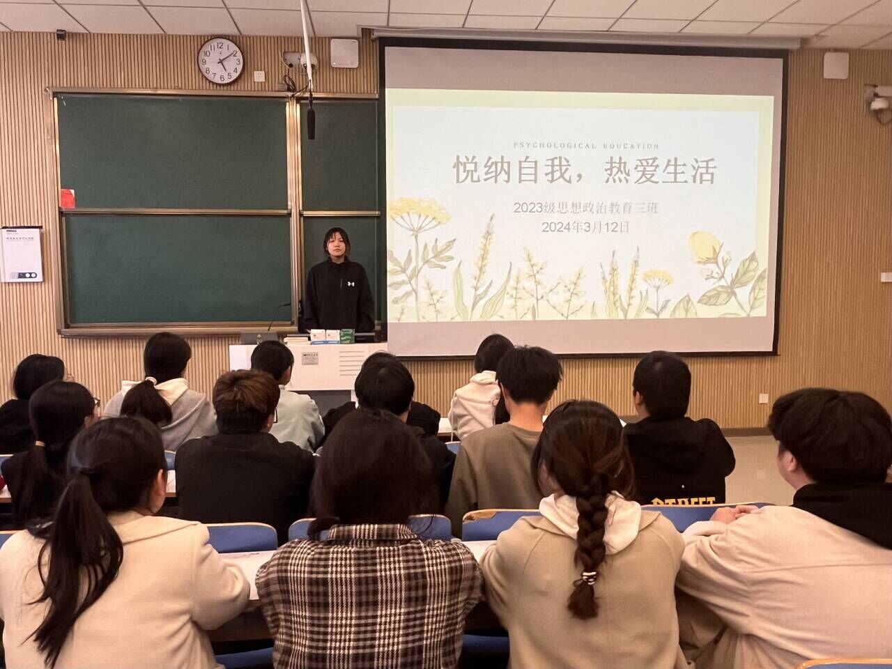 为普及心理健康教育,3月12日上午,beat365亚洲版官网2023级思想政治教育三班在社科楼515教室召开“悦纳自我,热爱生活”心理健康班会。beat365官网2023级思想政治教育三班全体成员共同参加此次班会,班会由心理委员安雅楠主持。