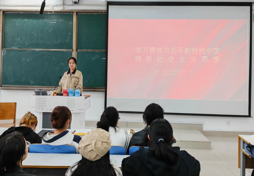 为引领beat365官网学子深刻学习领悟习近平新时代中国特色社会主义思想,10月16日上午,beat365亚洲版官网思想政治教育二班于社科楼514教室召开“深入学习贯彻习近平新时代中国特色社会主义思想”主题团课。本次团课由团支书崔锐琳主持,2025级思想政治教育二班全体同学共同参加。