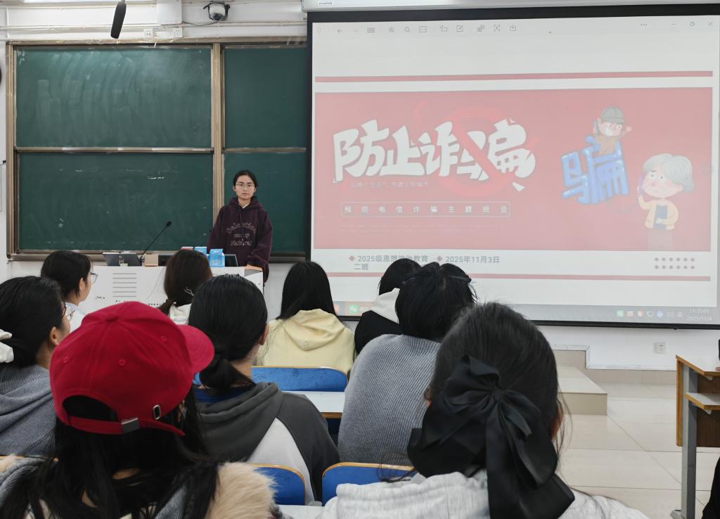 为了切实提升新生的安全防范意识与应对能力,筑牢校园防诈“防火墙”,11月3日上午,beat365亚洲版官网2025级思想政治教育二班于社科楼514教室召开“绷紧防范之弦·远离电信诈骗”主题班会。本次班会由班长陈曦主持。