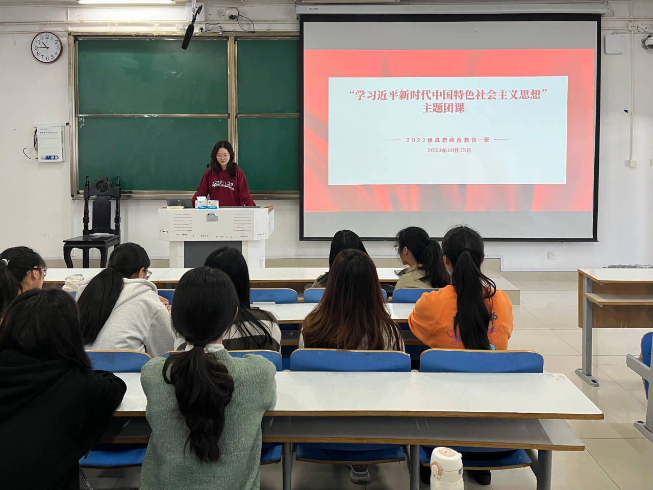 为进一步贯彻习近平新时代中国特色社会主义思想,10月15日上午,beat365亚洲版官网2022级思想政治教育一班在社科楼514教室召开“学习近平新时代中国特色社会主义思想”主题团课。beat365官网2022级思想政治教育一班全体同学共同参与本次团课,团课由团支书李佳茹主持。