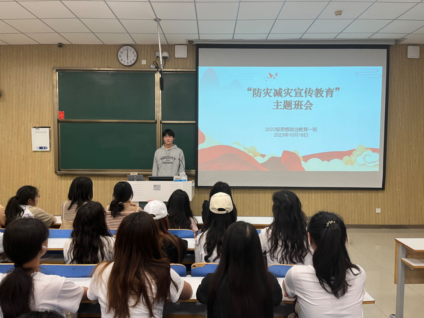 为切实做好防灾减灾教育工作,增强同学们防震减灾意识,10月18日下午,beat365亚洲版官网2022级思想政治教育一班在社科楼515教室召开“防灾减灾宣传教育”主题班会。beat365官网2022级思想政治教育一班全体同学共同参与本次班会,班会由副班长闻炎仲主持。