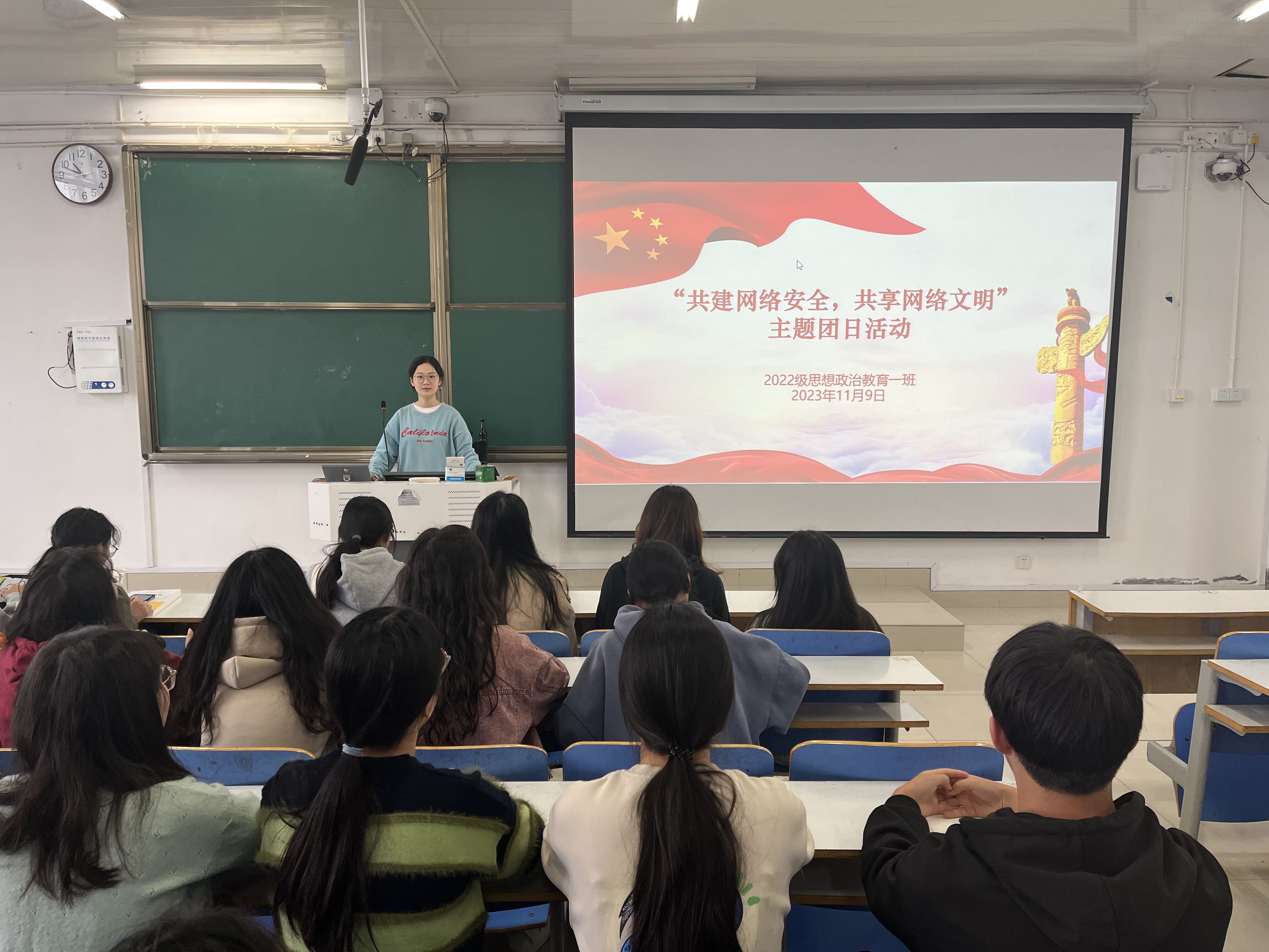 为做好网络安全宣传工作,提升同学们的网络安全意识,11月9日上午,beat365亚洲版官网2022级思想政治教育一班在社科楼514教室开展“共建网络安全,共享网络文明”主题团日活动。beat365官网2022级思想政治教育一班全体同学共同参与本次活动,活动由团支书李佳茹主持。
