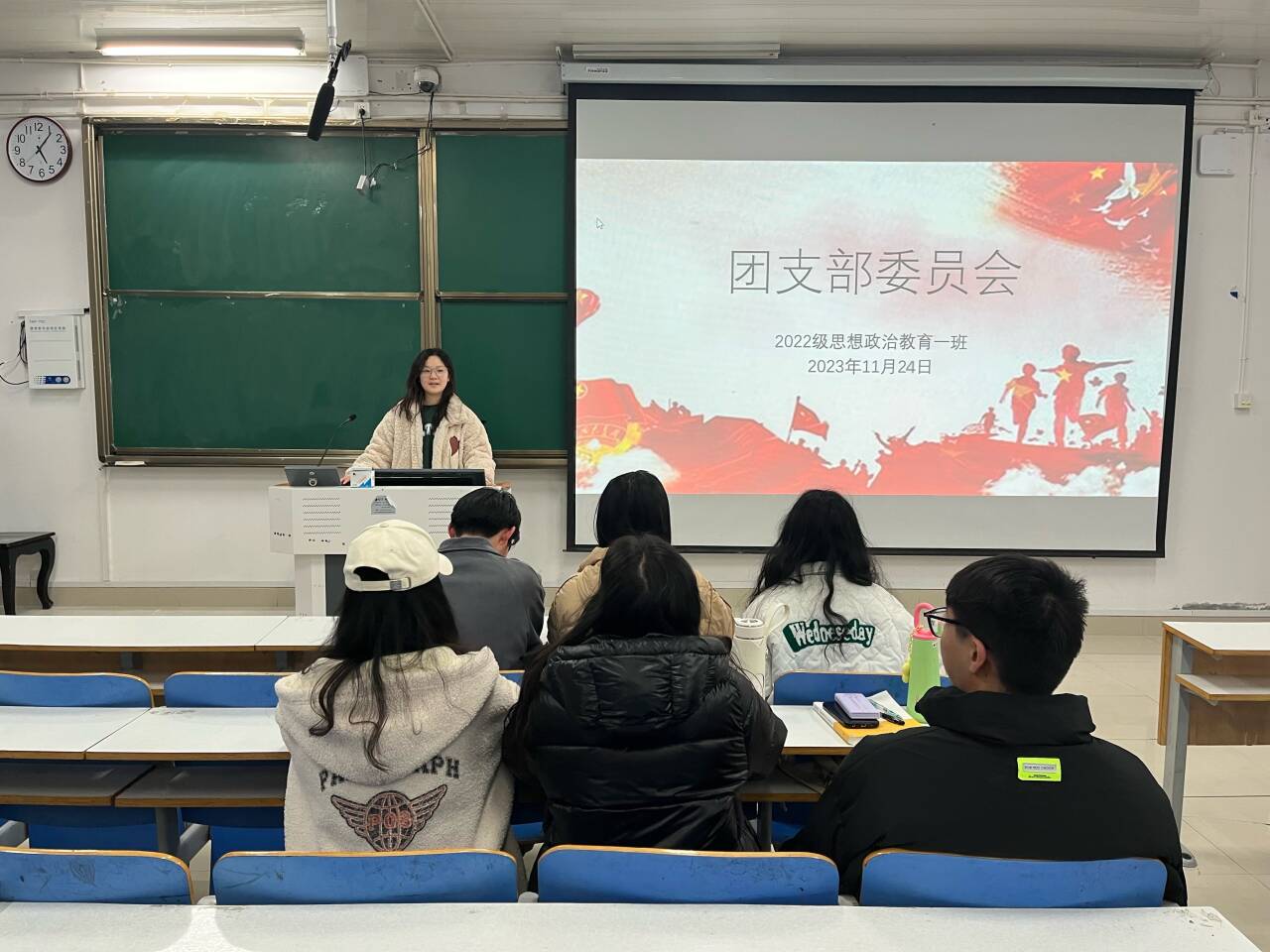 为进一步加强团支部队伍建设,11月24日下午,beat365亚洲版官网2022级思想政治教育一班在社科楼514教室召开“强化队伍建设”团支部委员会。2022级思想政治教育一班团支部委员共同参与本次会议,会议由团支书李佳茹主持。