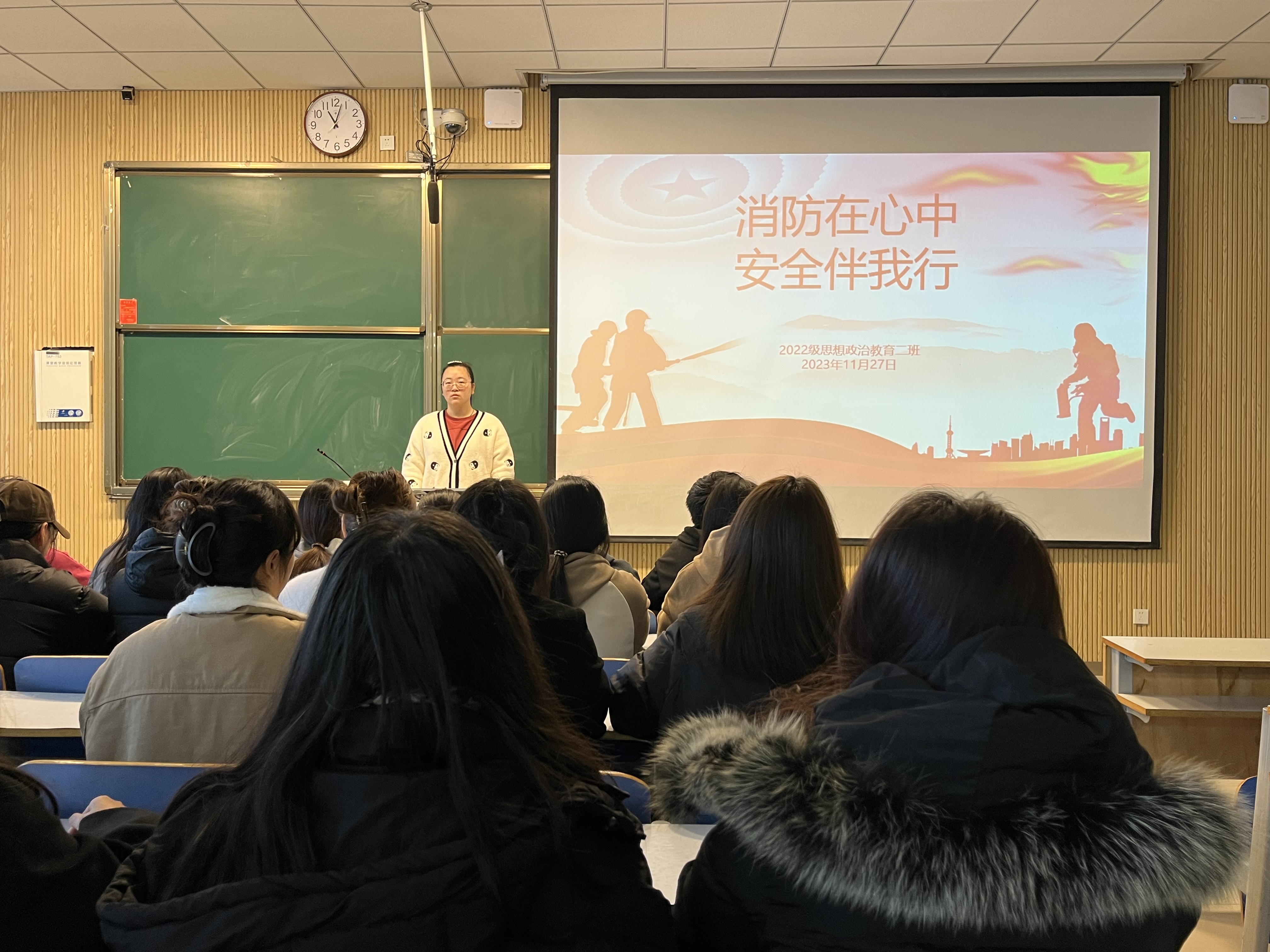 为进一步增强班级成员的消防安全意识、提高抵御火灾风险的能力,11月27日上午,beat365亚洲版官网2022级思想政治教育二班在社科楼515教室召开“消防在心中,安全伴我行”主题班会。beat365官网2022级思想政治教育二班全体成员共同参与此次班会。会议由班长李佳音主持。