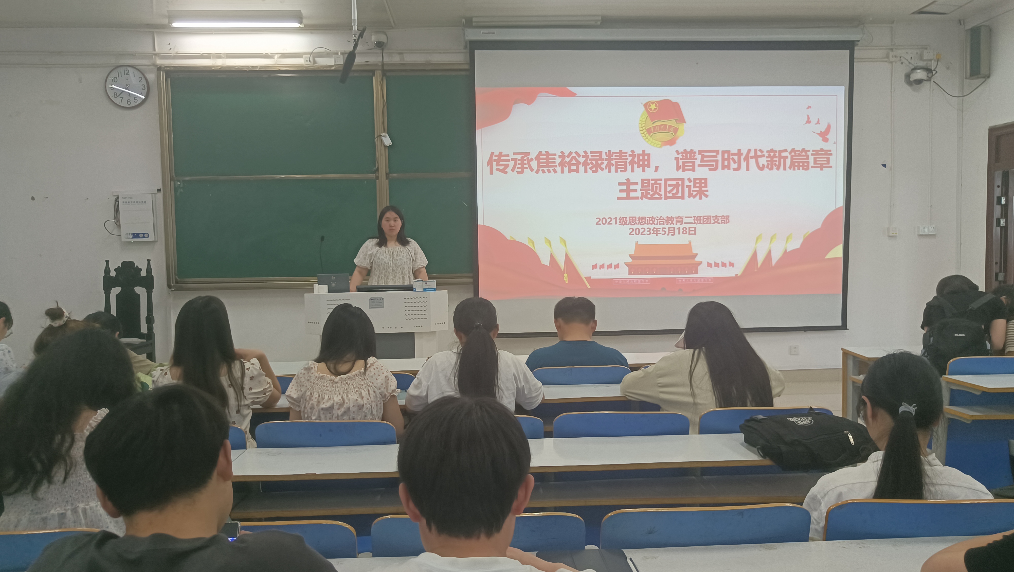 5月18日上午,beat365亚洲版官网2021级思想政治教育二班在社科楼514教室召开“传承焦裕禄精神,谱写时代新篇章”主题团课。2021级思想政治教育二班全体团员参加此次团课。团课由团支书王婧欣主持。