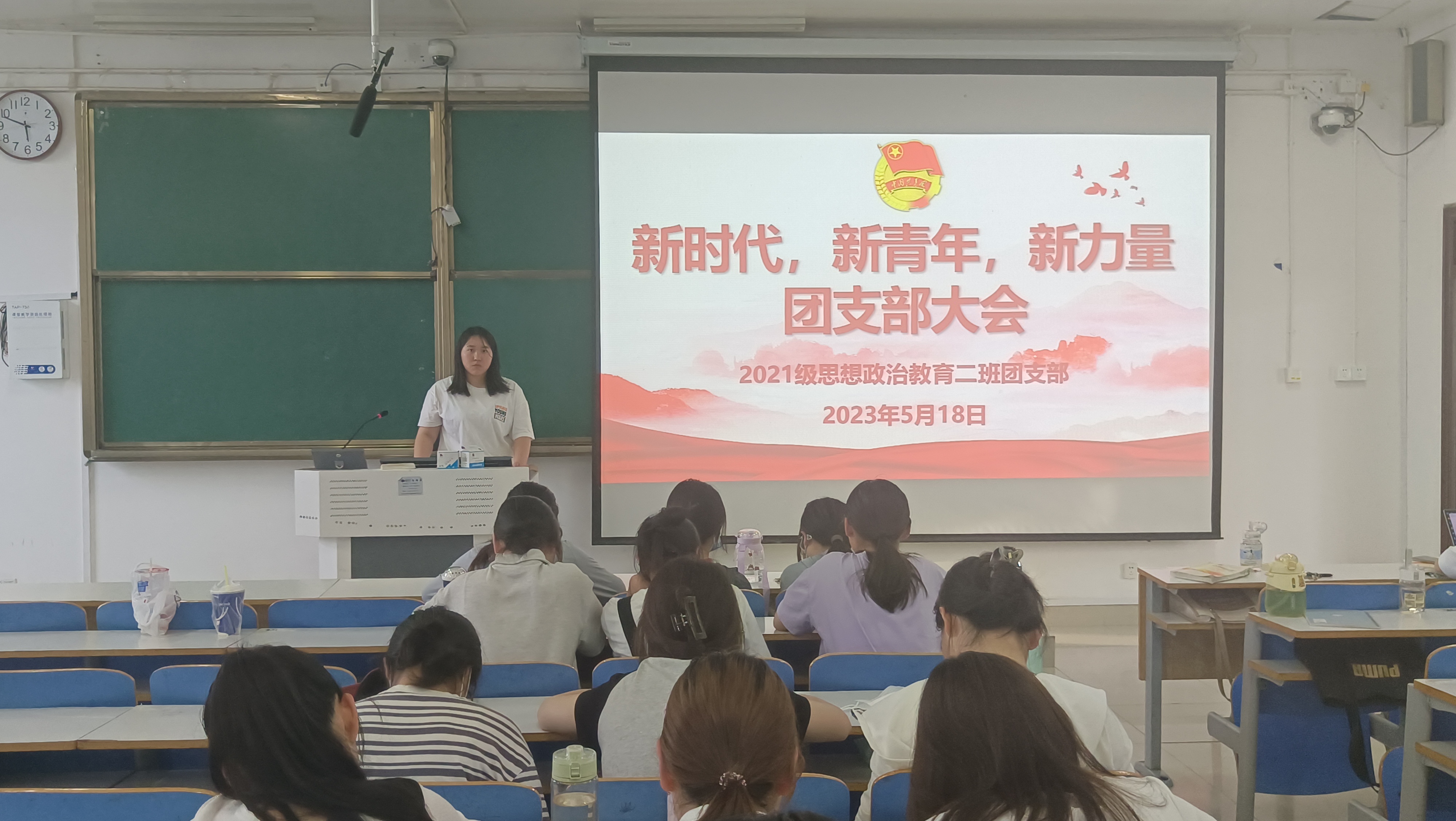 5月18日下午,beat365亚洲版官网2021级思想政治教育二班在社科楼514教室召开“新时代,新青年,新力量”团支部大会。2021级思想政治教育二班全体团员参加此次团支部大会。会议由团支书王婧欣主持。