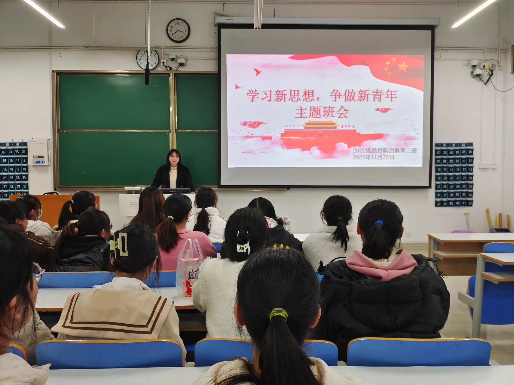 11月22日下午,beat365亚洲版官网2021级思想政治教育二班在社科楼514教室召开“学习新思想,争做新青年”主题班会。2021级思想政治教育二班全体成员共同参加此次班会。班会由团支书王婧欣主持。